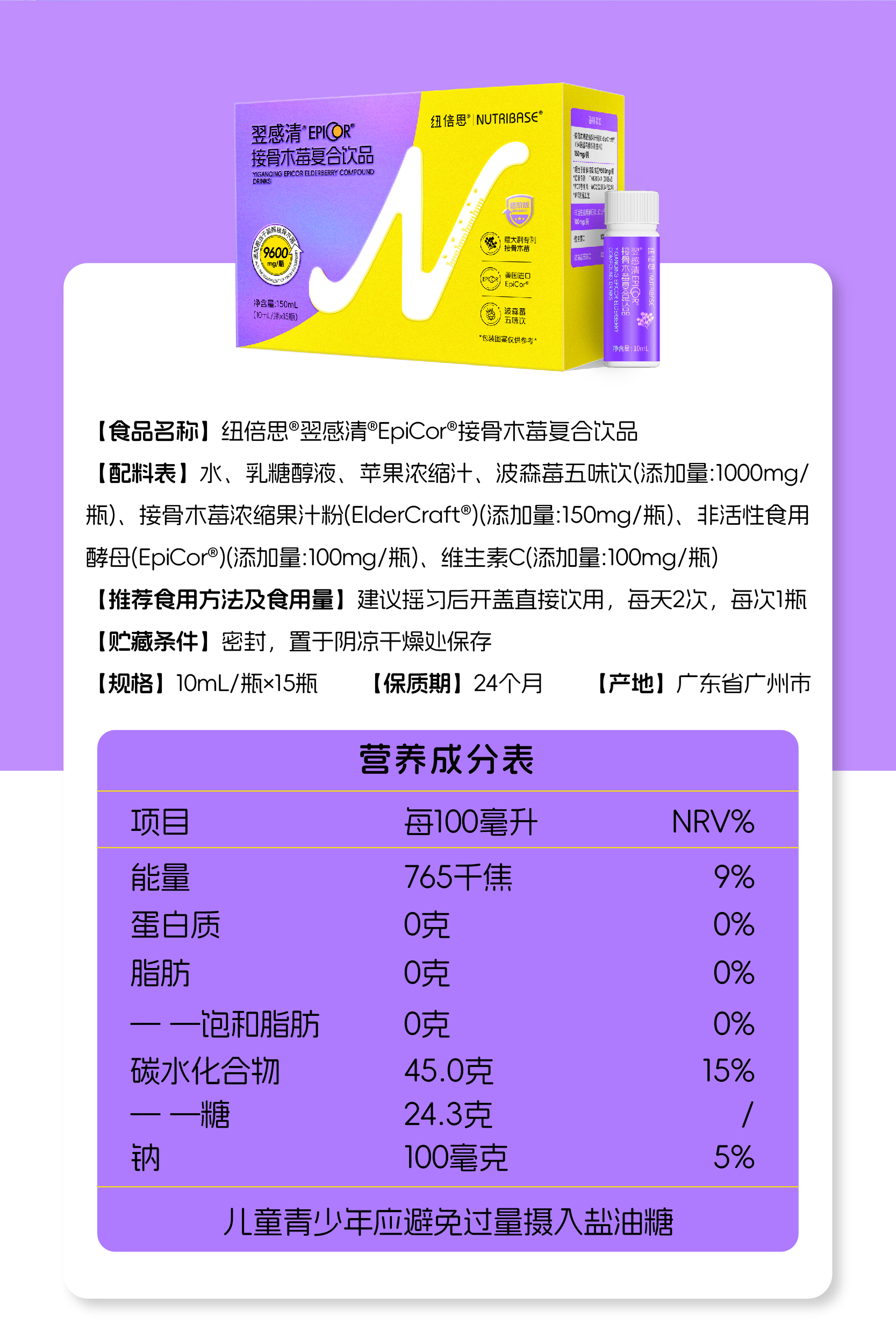每瓶含接骨木莓 9600mg+波森莓五味饮1000mg+艾比可100mg+VC100mg 10ml*15瓶/盒
