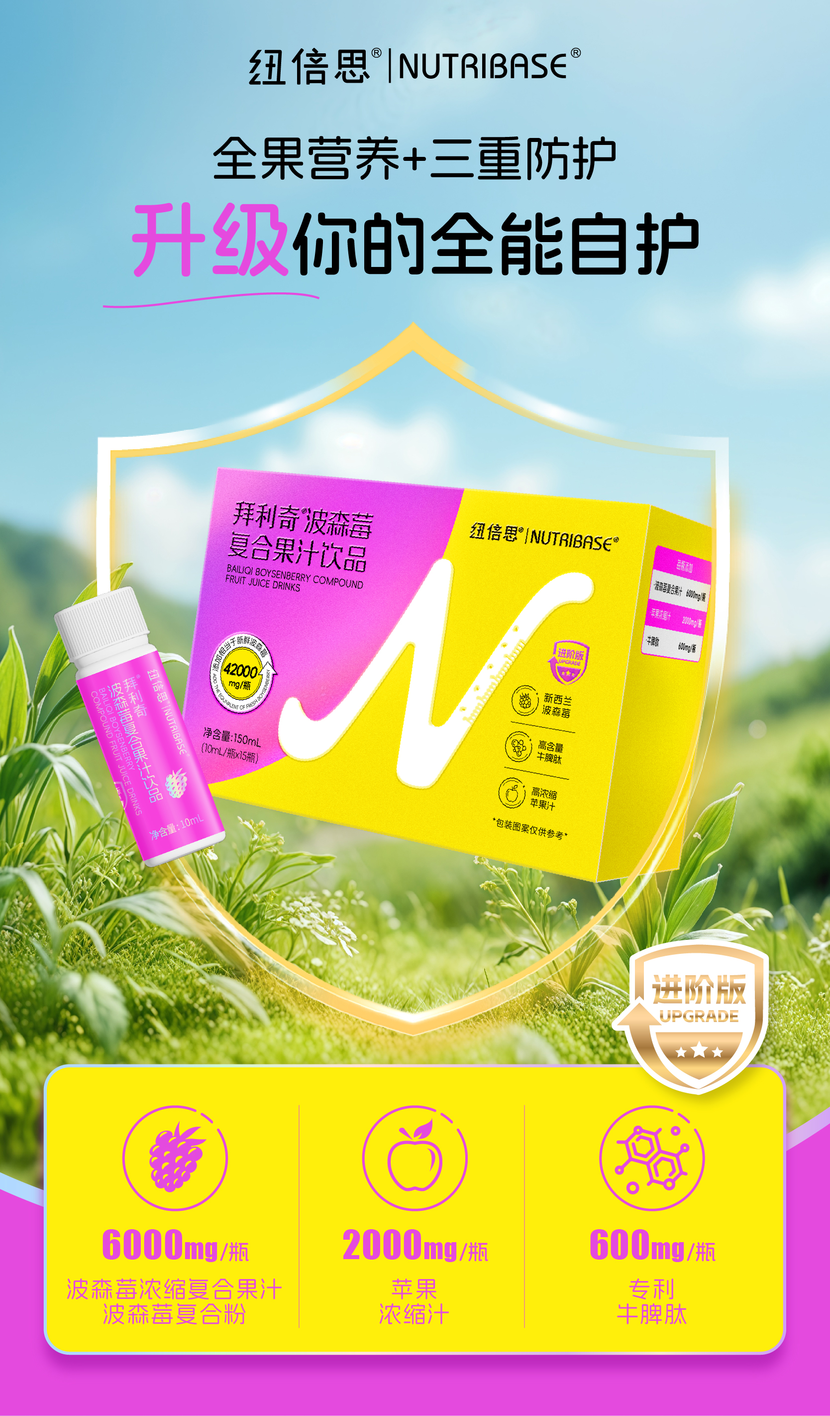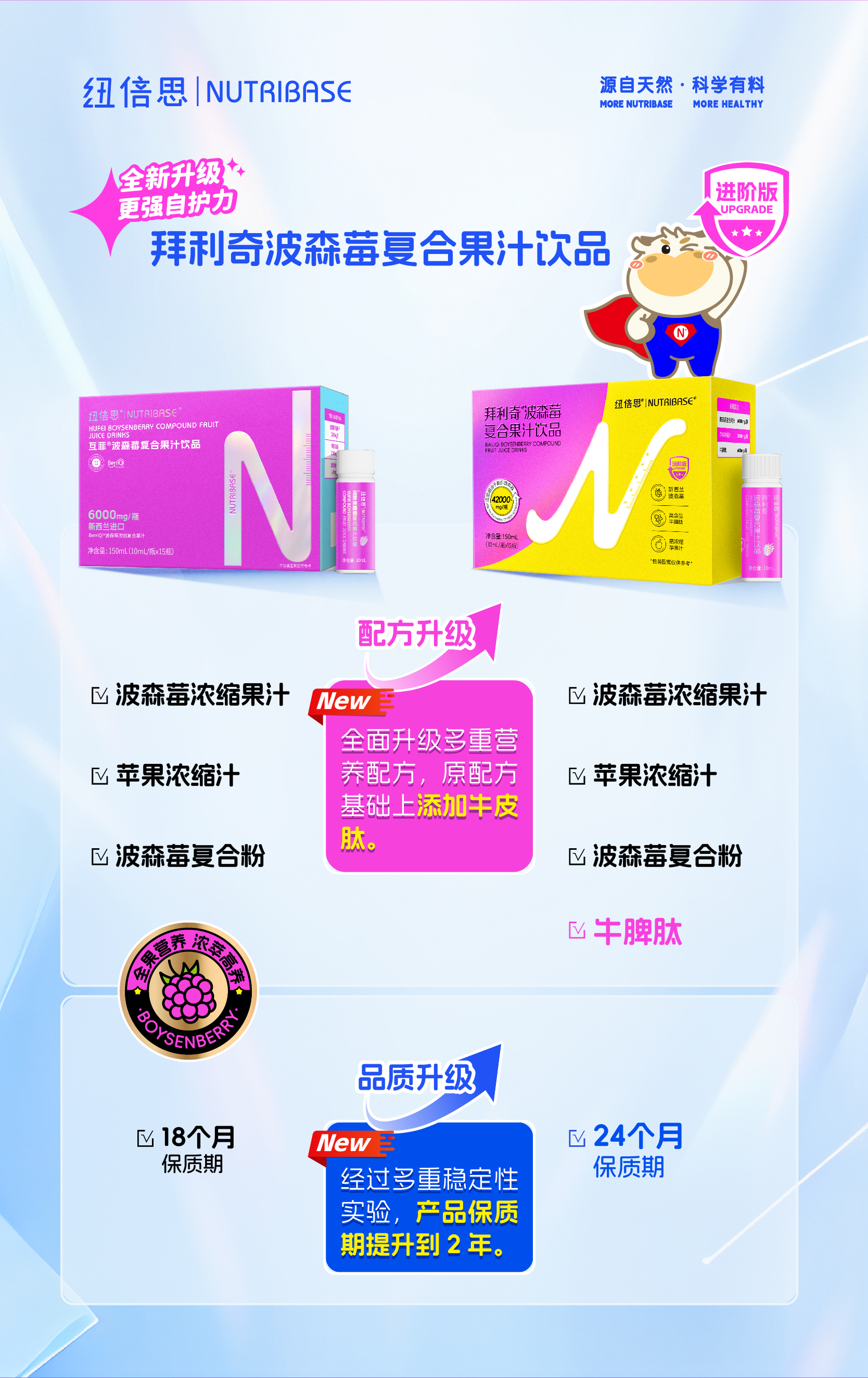 为了答谢长久以来男友们对纽倍思的支持,特开展新品升级尝鲜套装,新升级波森莓1盒加接骨木一盒,每人限购一单。