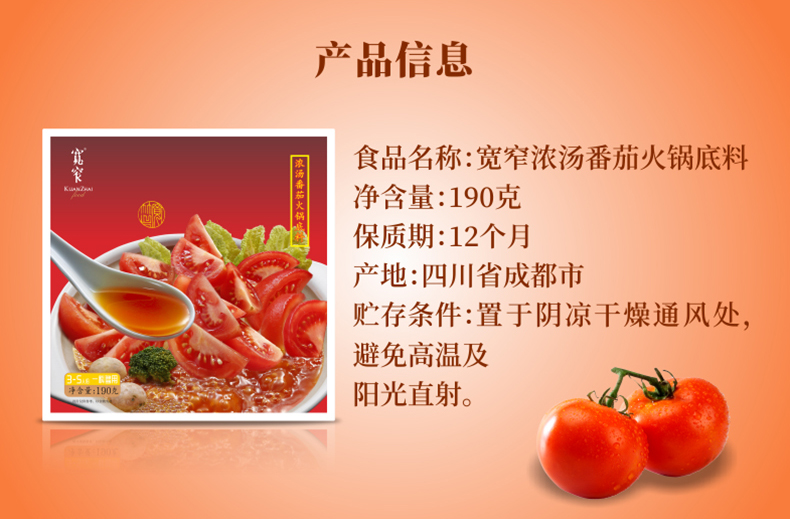 宽窄浓汤番茄火锅底料190g