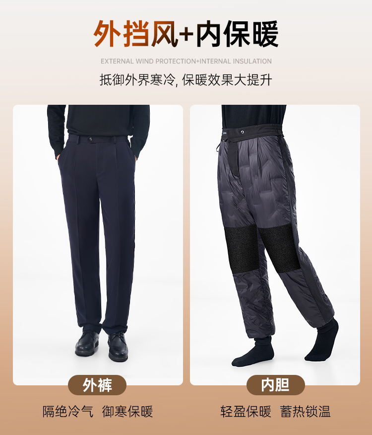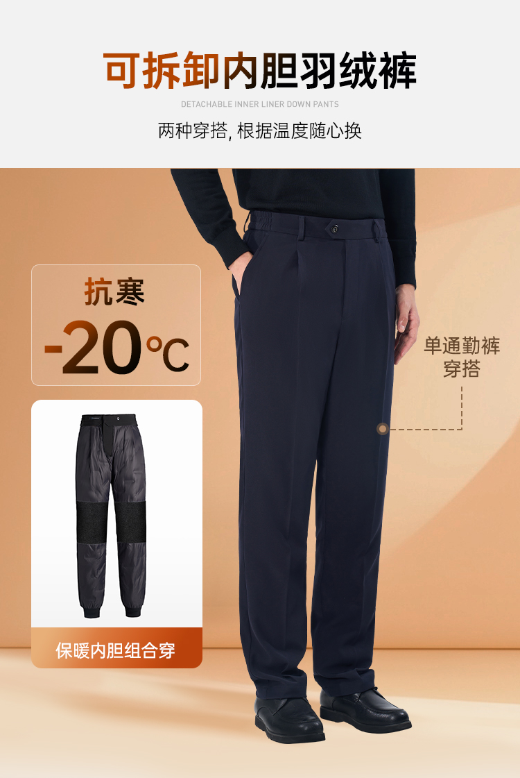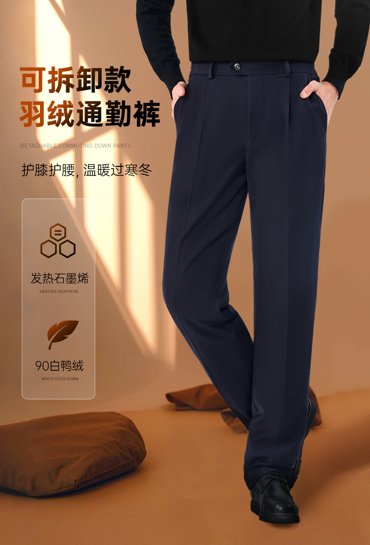 【三代护膝羽绒通勤裤(可拆卸内胆)】 男女款石墨烯保暖长裤高弹抗皱通勤西裤休闲直筒加绒裤