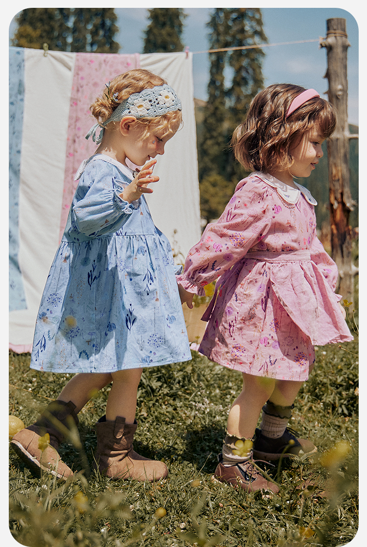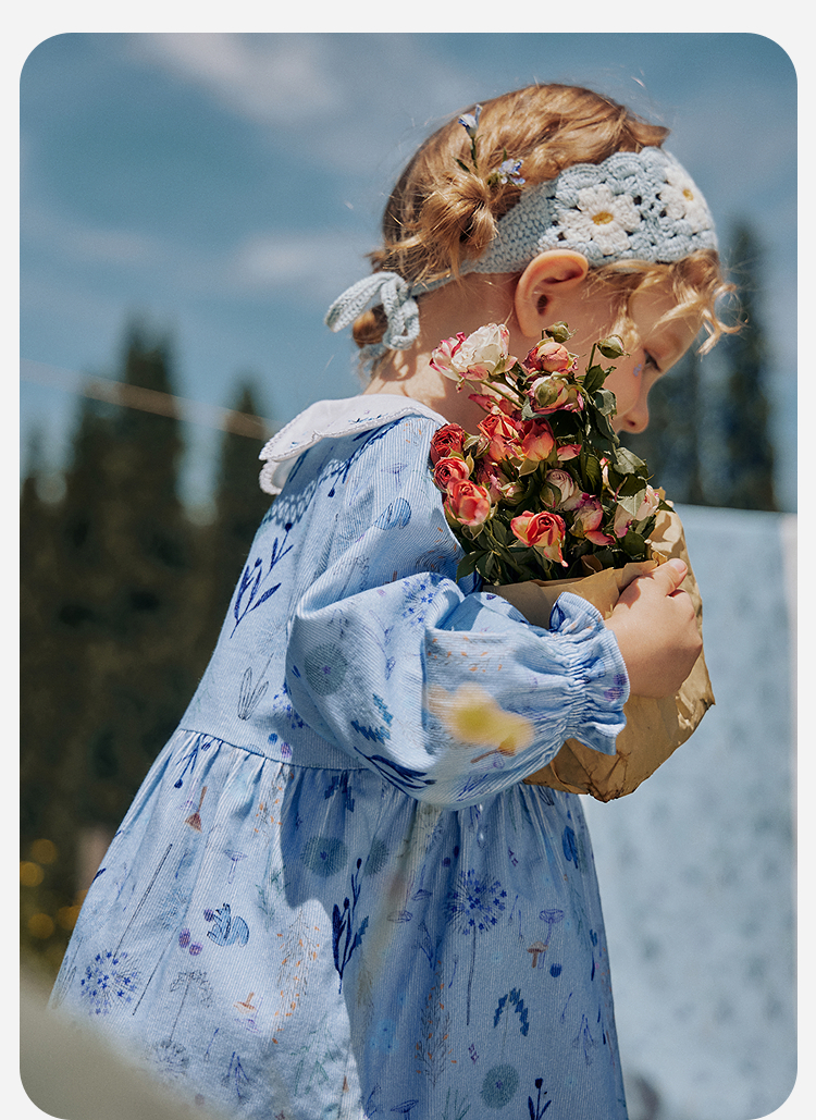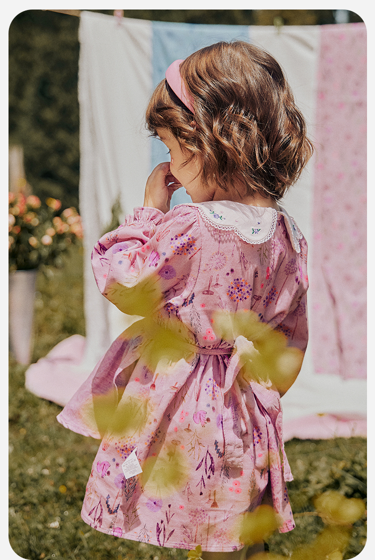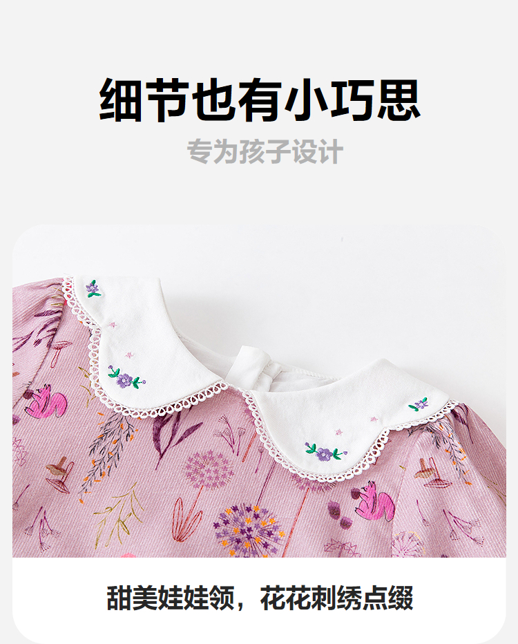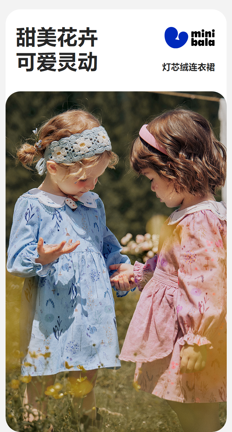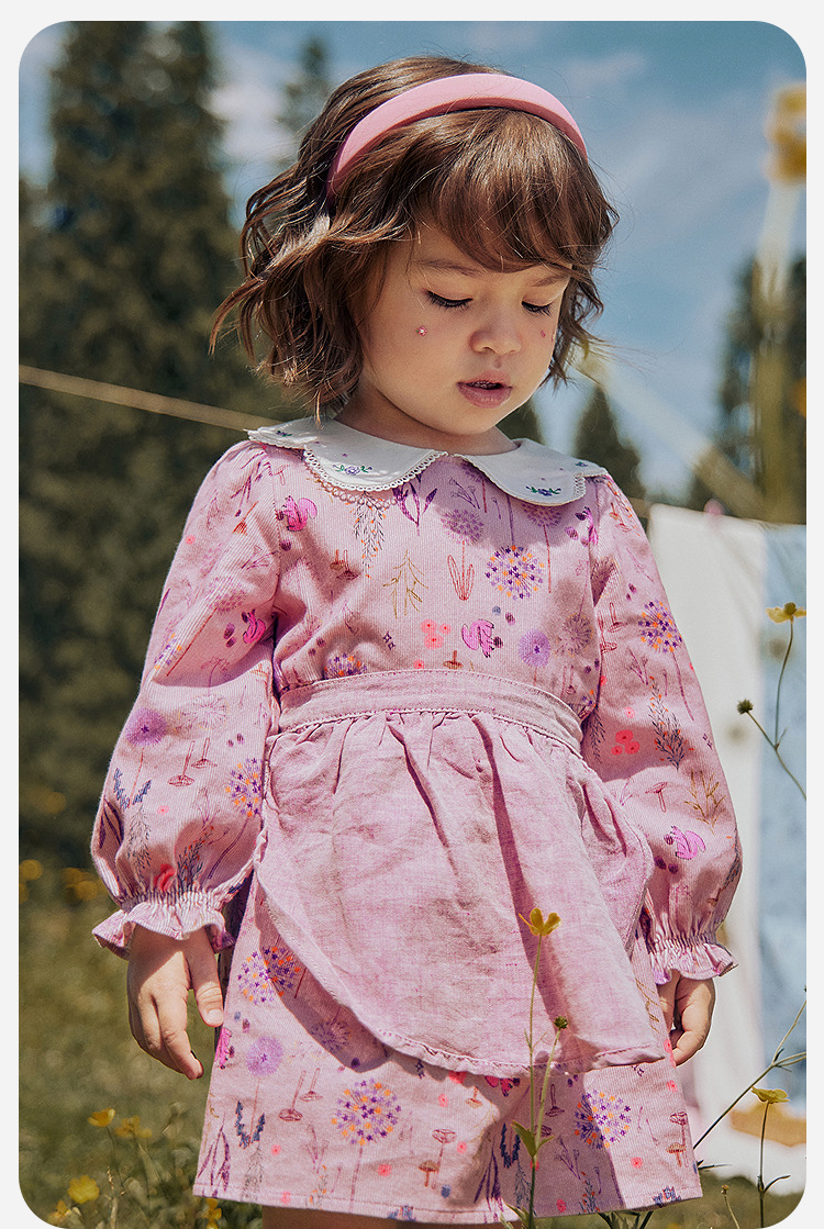 迷你巴拉女童儿童柔软宽松A摆娃娃领灯芯绒连衣裙2025秋新品