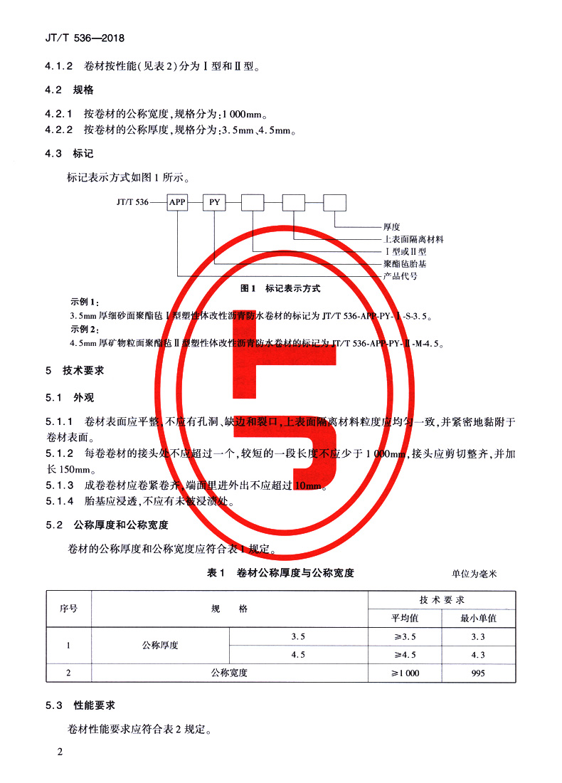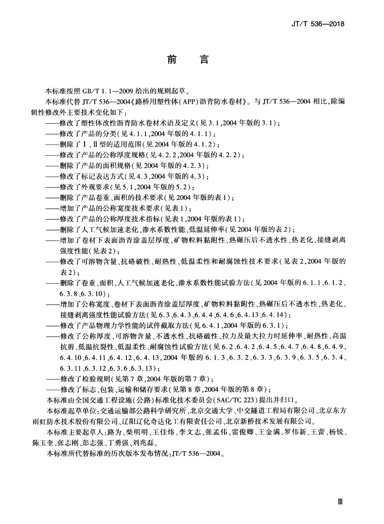 路桥用塑性体改性沥青防水卷材(JT/T 536—2018)