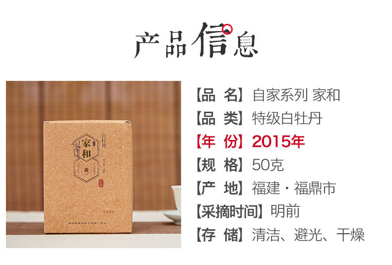 自家系列丨2015年 白牡丹 家和 特级 50g盒
