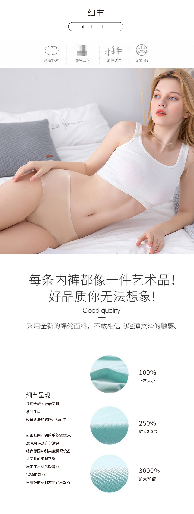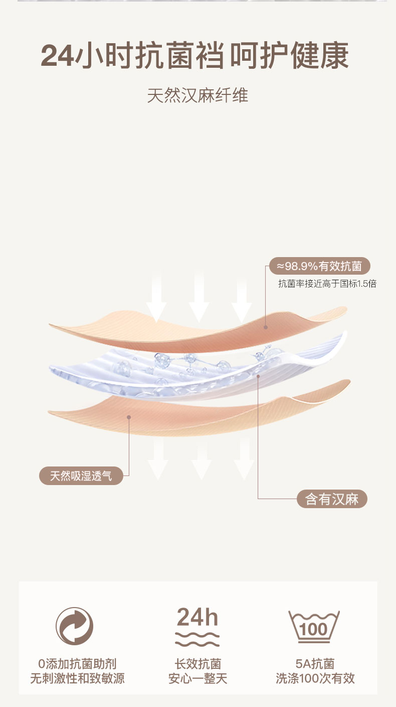 温馨提示:内裤底档含汉麻纤维(汉麻本为黄色),因汉麻混纺制作中易出现纱织重叠,有明显小黄点是正常现象哦,不是脏污,请放心购买~