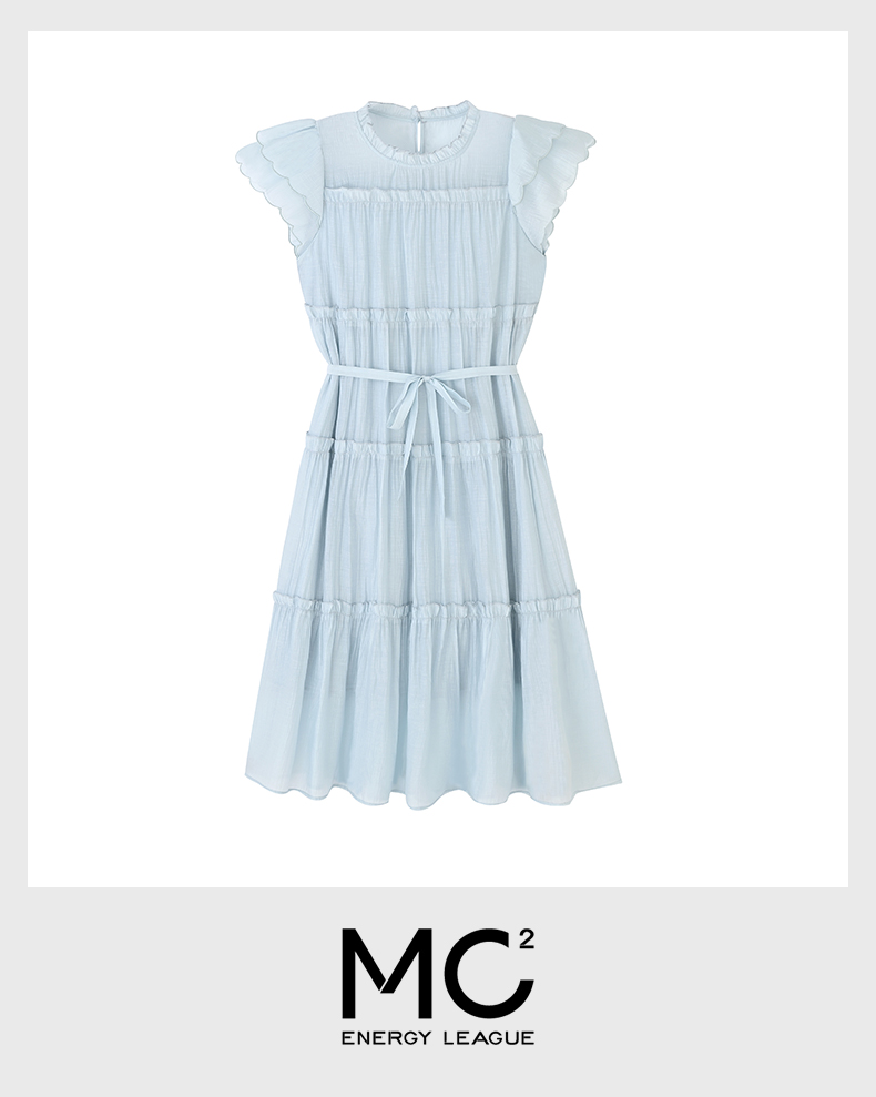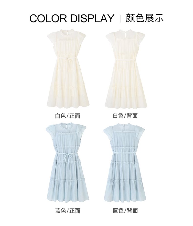 女装花边立领蛋糕压皱连衣裙-103Q5222002