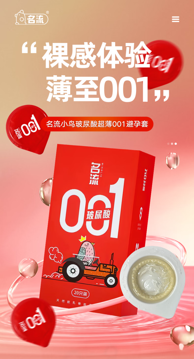 名流避孕套超薄0.01隐形裸入安全套男女用玻尿酸快感秒喷套套情趣用品 【20只】001超薄激情小鸟果冻装