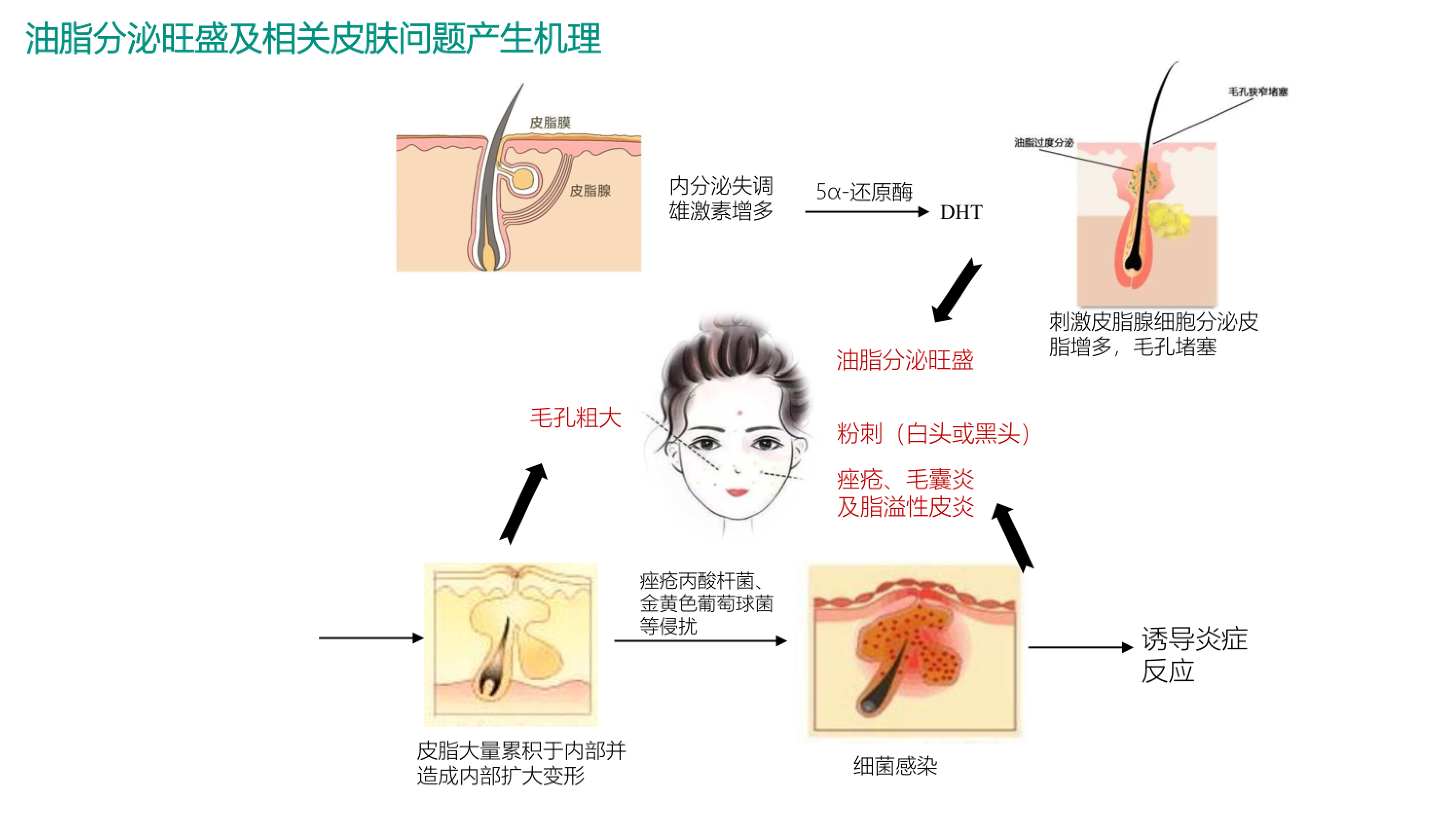 同时容易出现痤疮和脂溢性皮琰等问题。