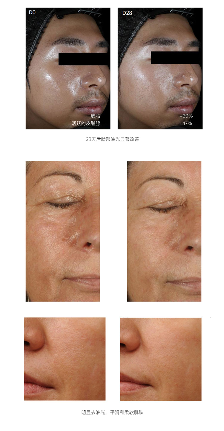 促进伤口愈合、减少痘痕痘印 •显著减少皮脂分泌 •显著减少黑头粉刺和琰症病变 •显著减少皮肤表面损伤 •显著减少炎症病变