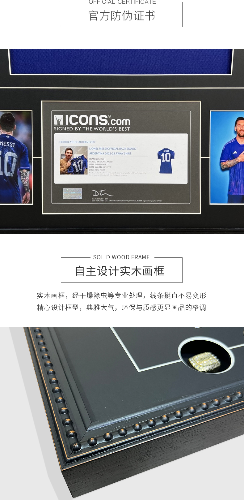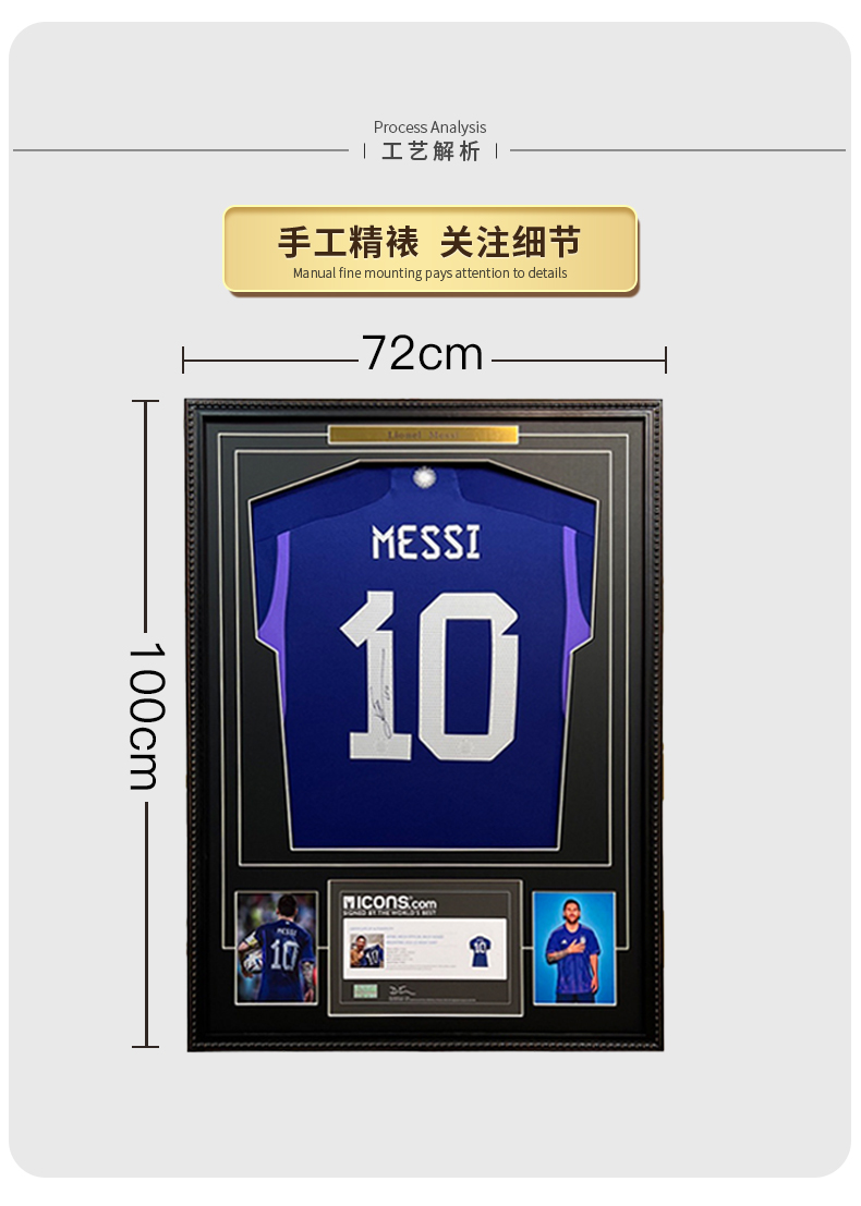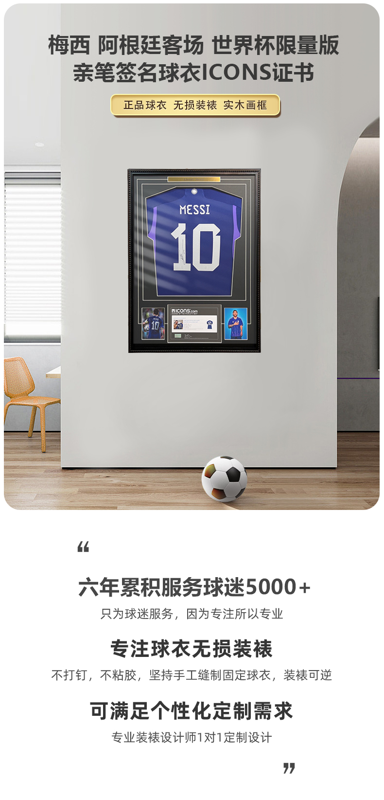 收藏系列 梅西 阿根廷客场 世界杯限量版 亲笔签名球衣 ICONS证书