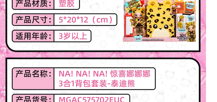 MGA惊喜娜娜娜毛绒背包套装美洲豹泰迪熊