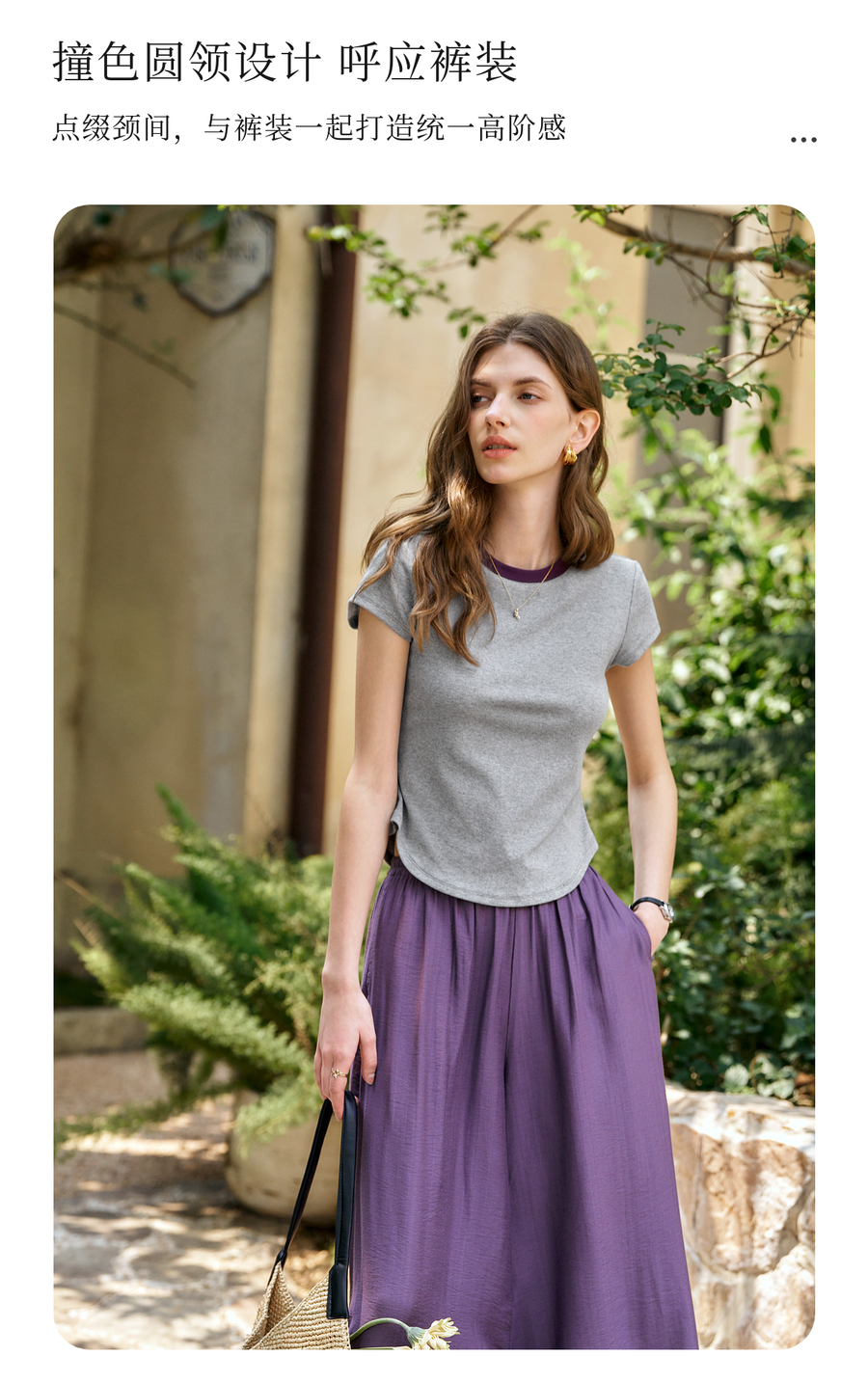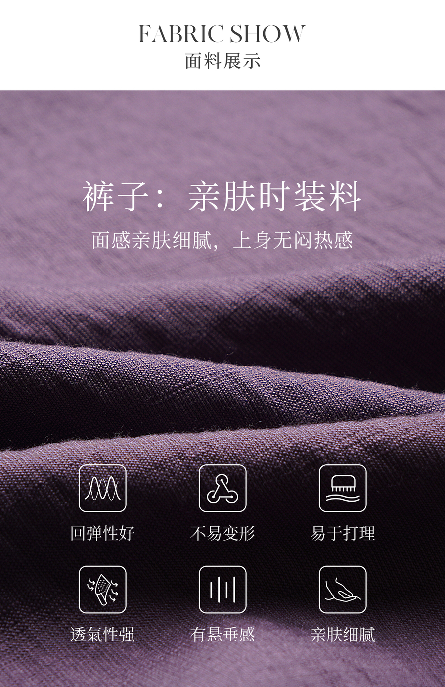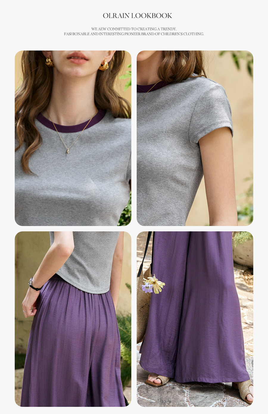 OLrain欧芮儿灰色修身上衣紫色慵懒风裤子女夏季2025新款两件套装