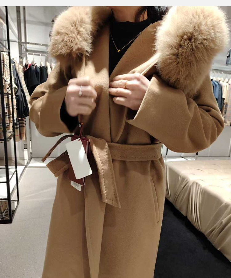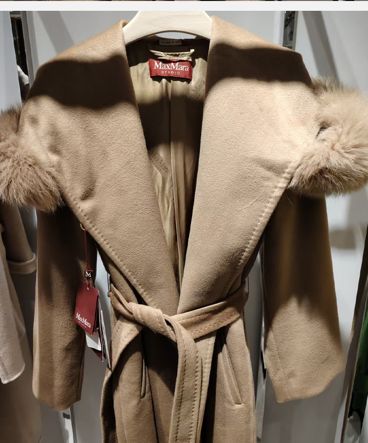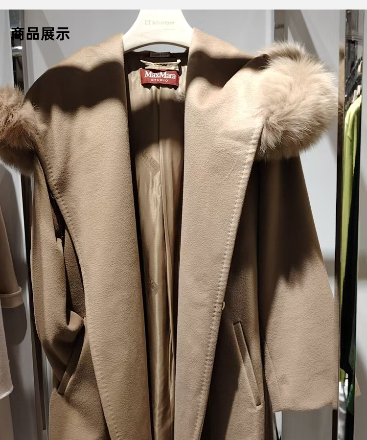 MAXMARA 女士羊毛连帽束腰风衣 驼色 MANGO 60161129 029