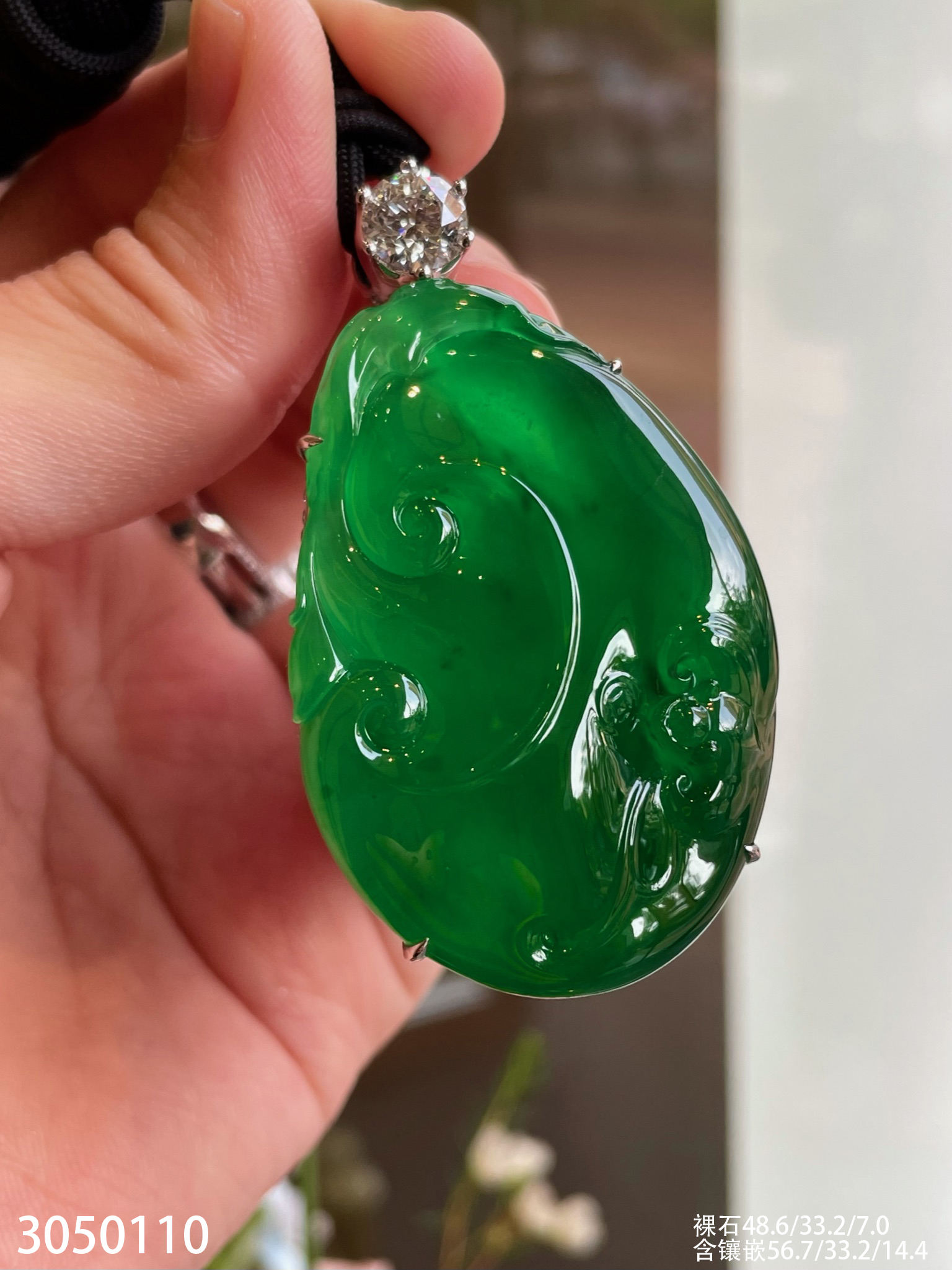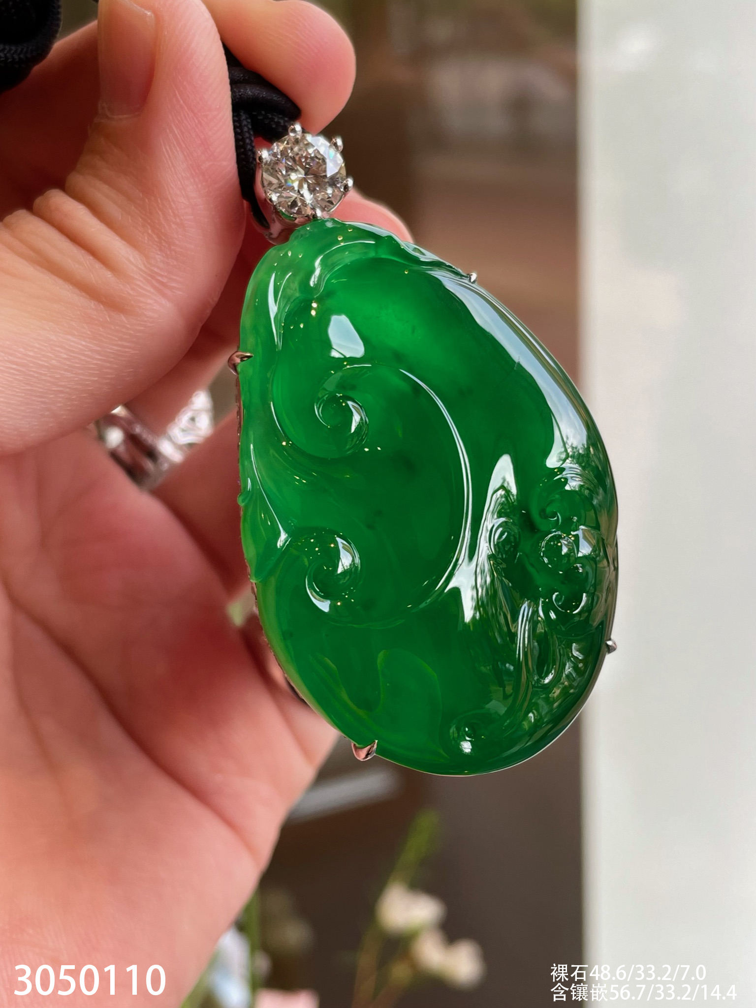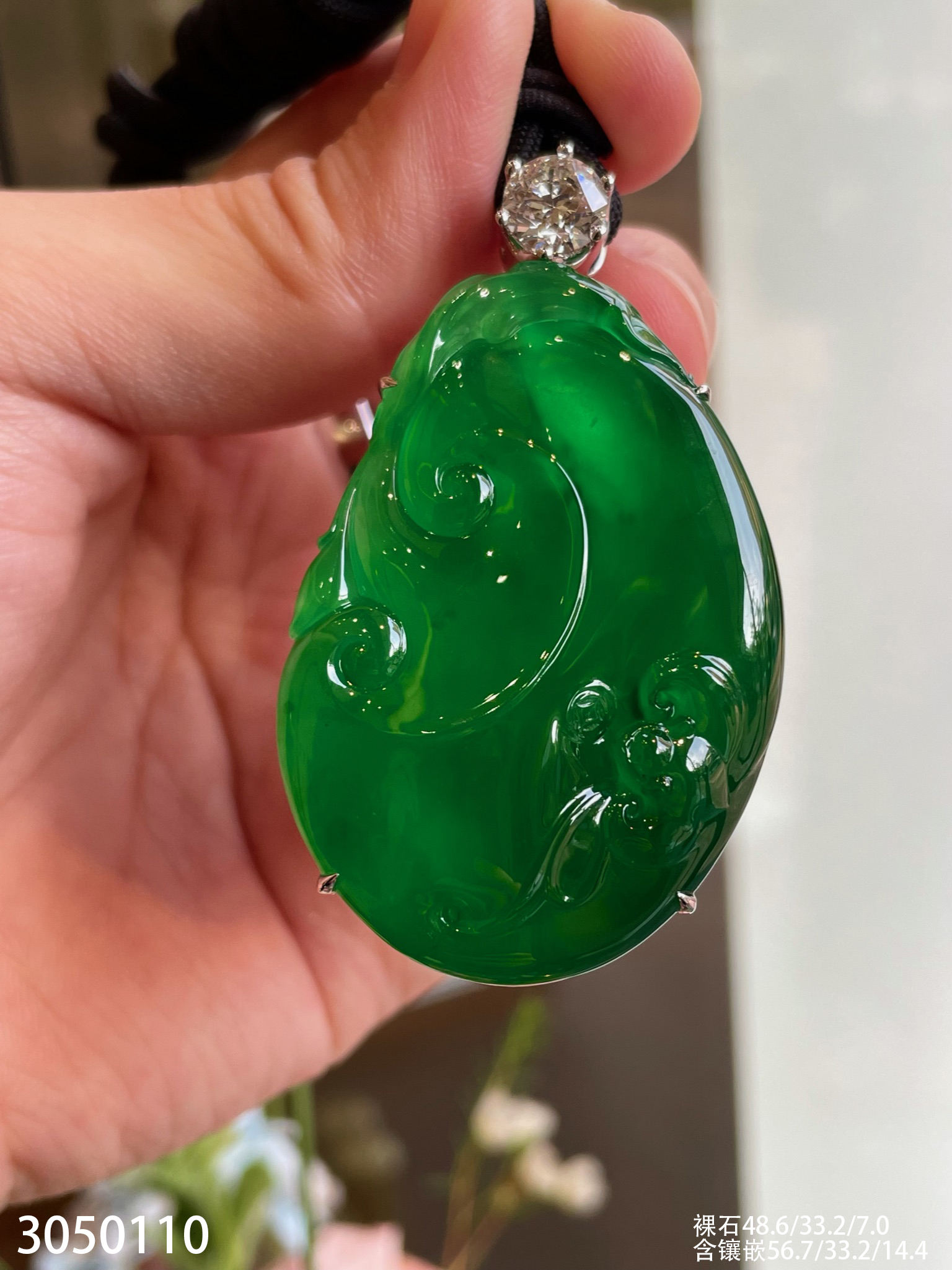 老坑玻璃种帝王绿如意吊坠【3050110】具体价格微信咨询