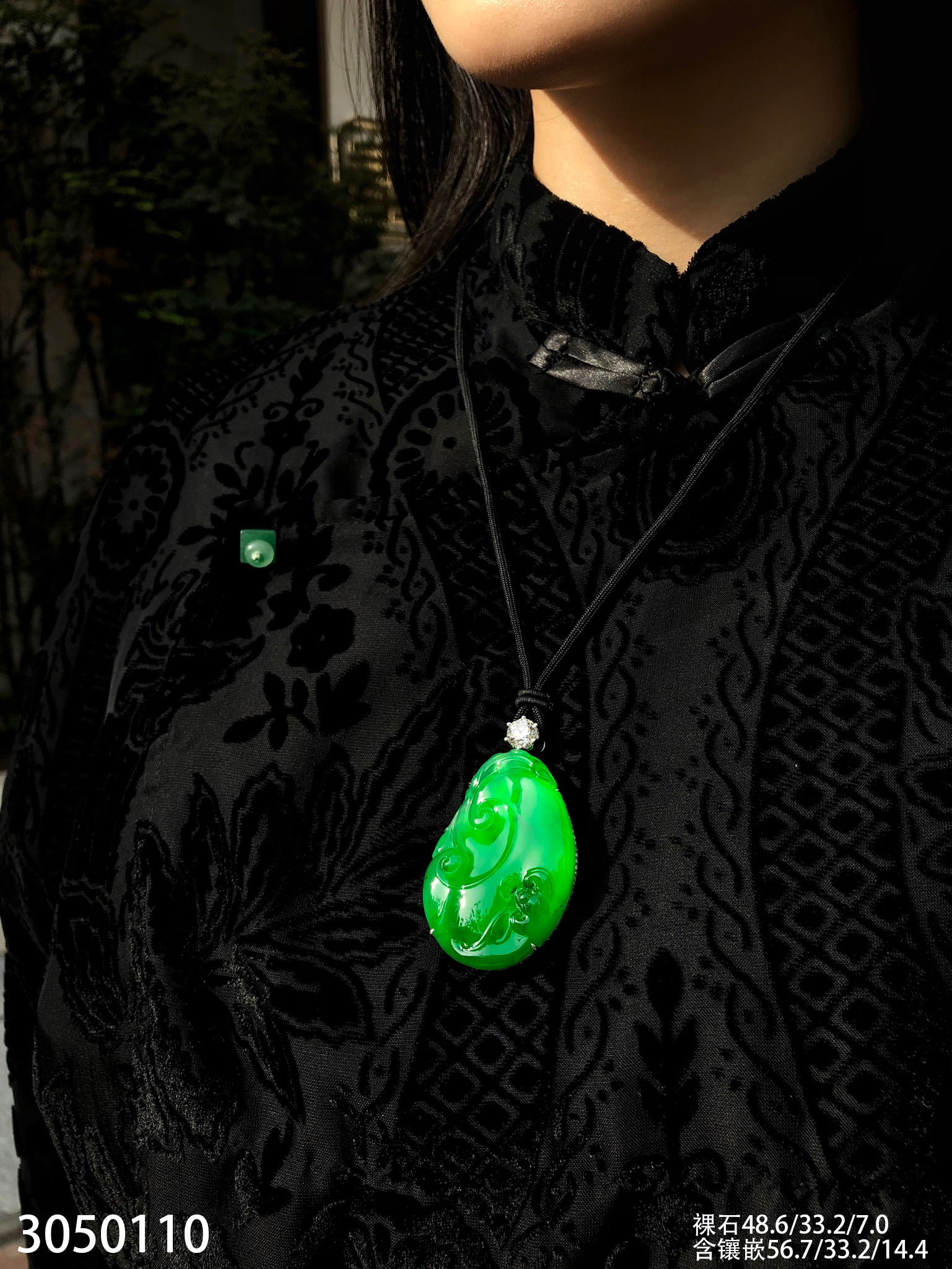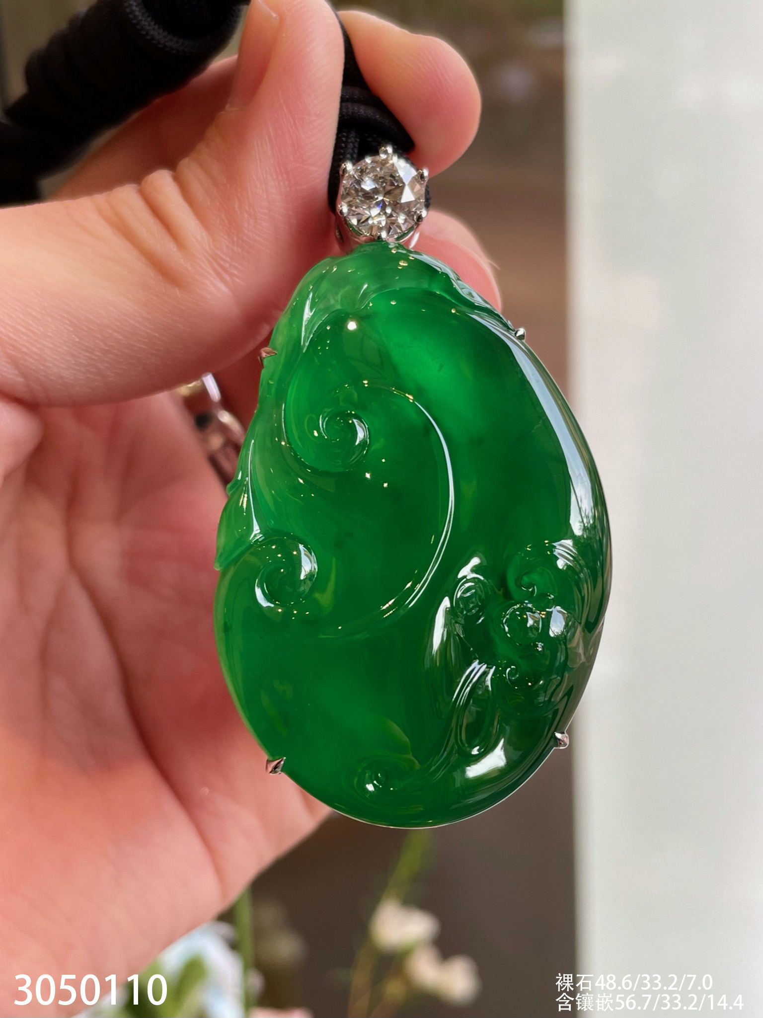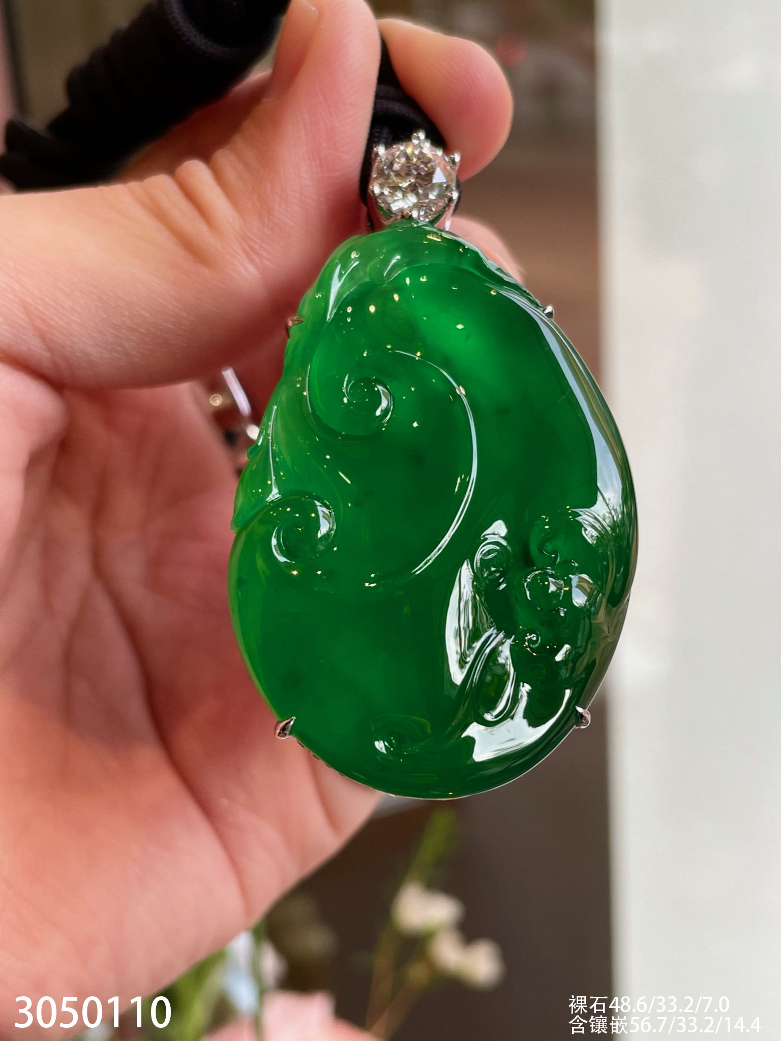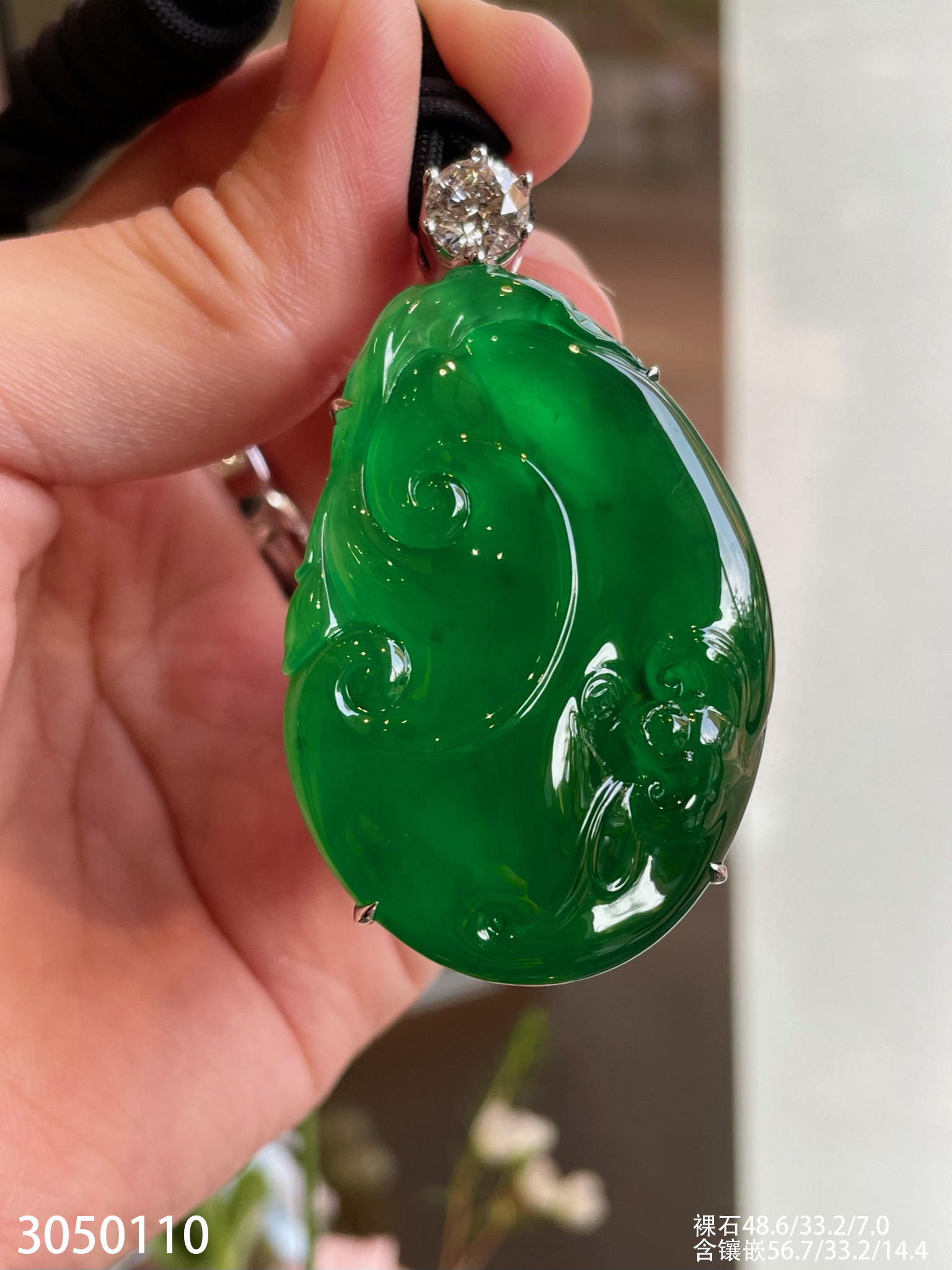 老坑玻璃种帝王绿如意吊坠【3050110】具体价格微信咨询