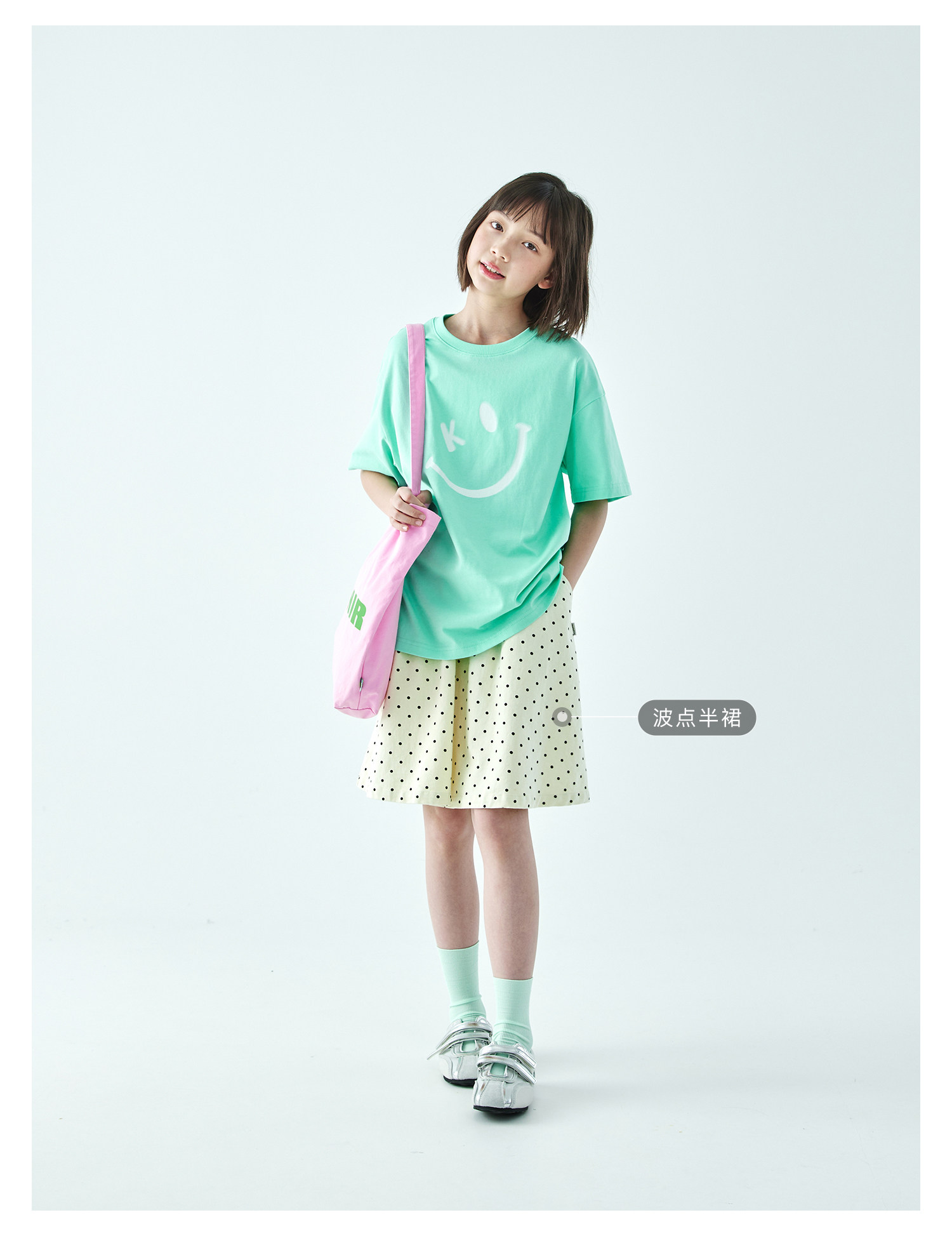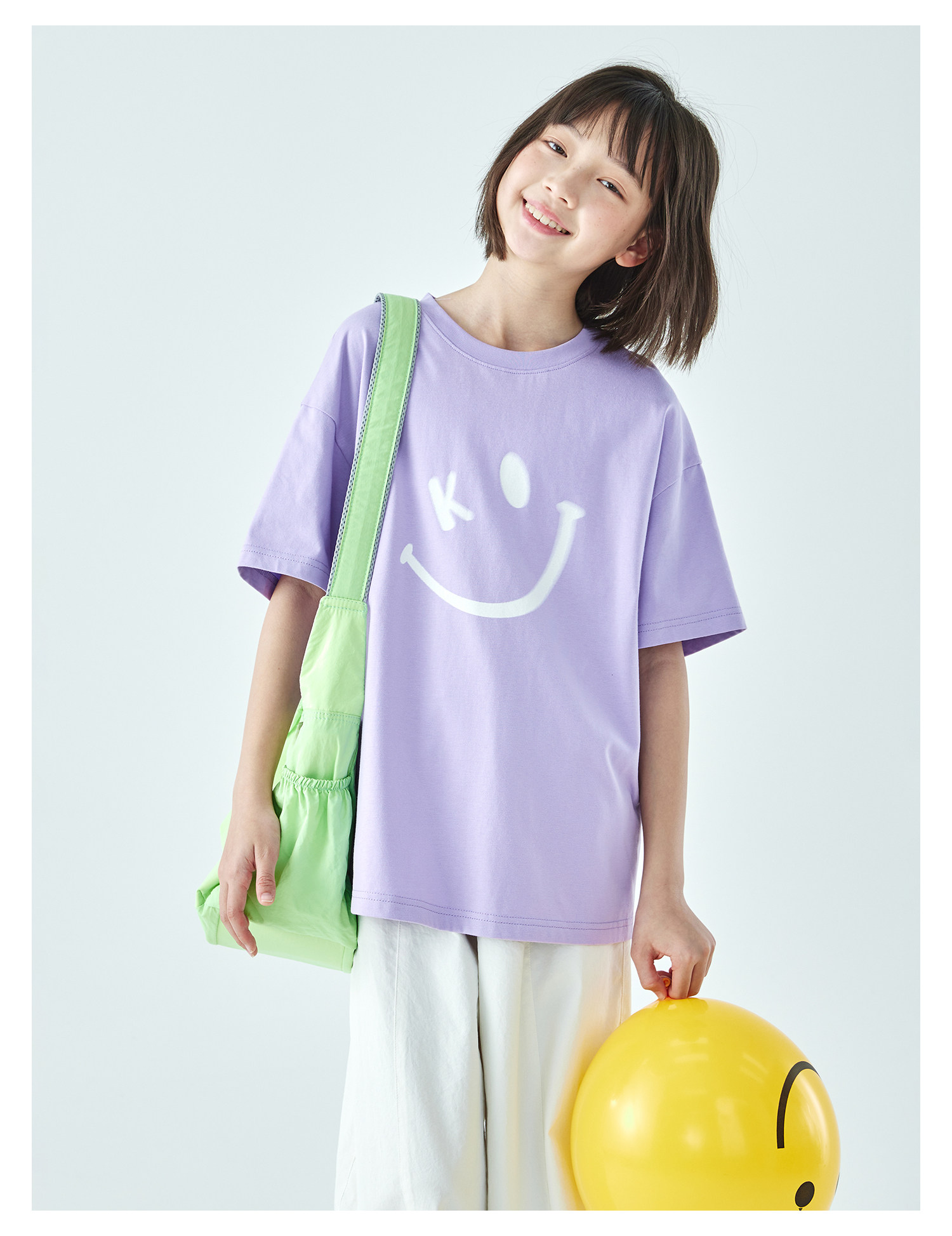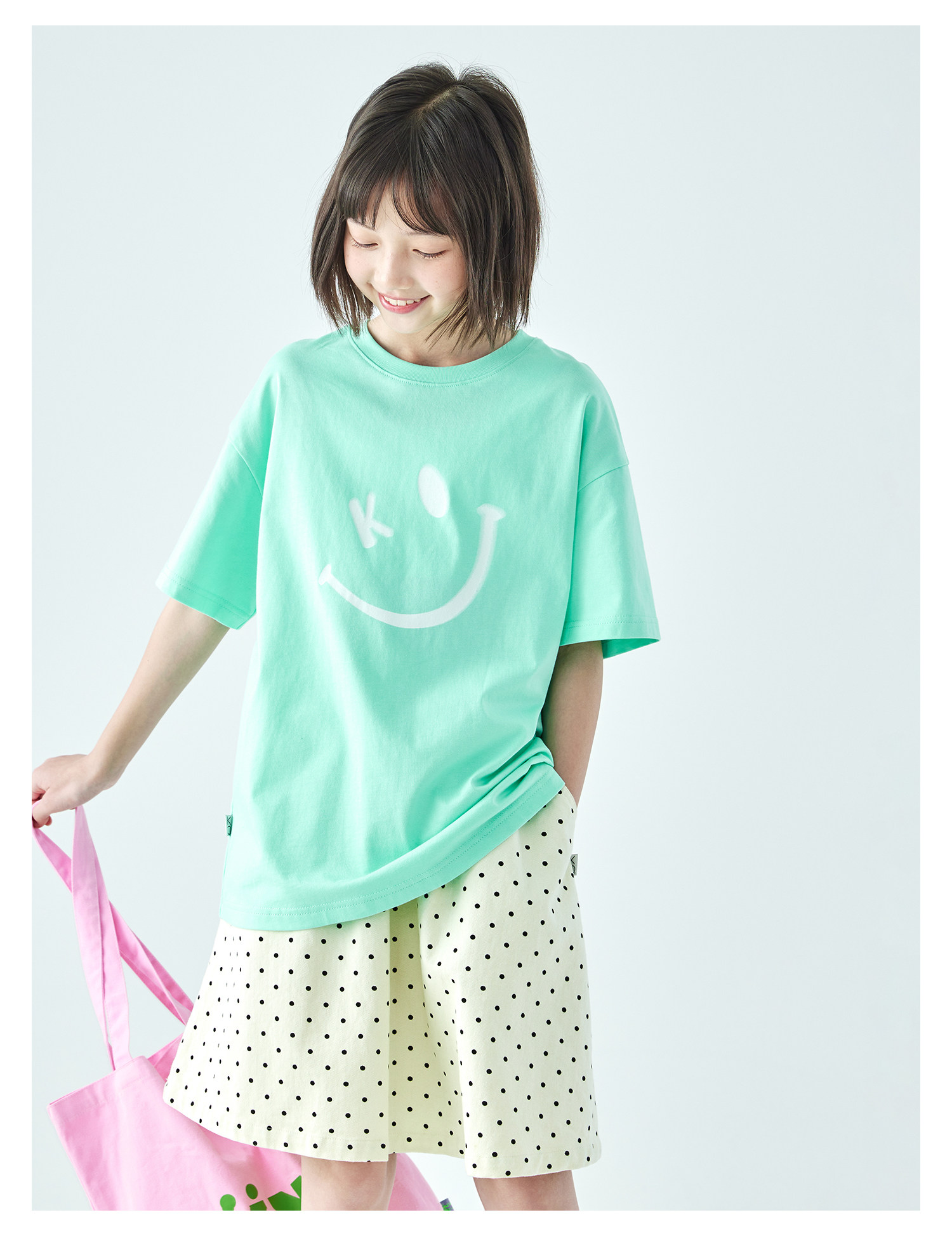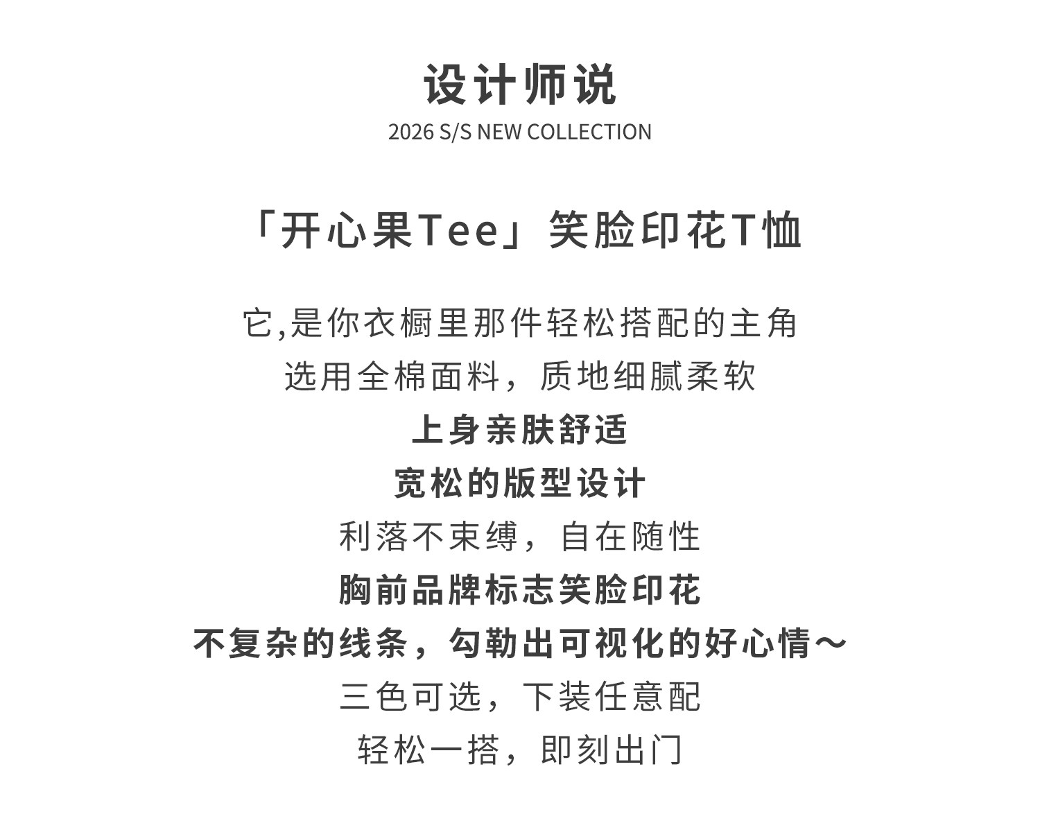 棵初「开心果T」2026年夏季新款亲子中大女童笑脸印花T恤纯棉短袖