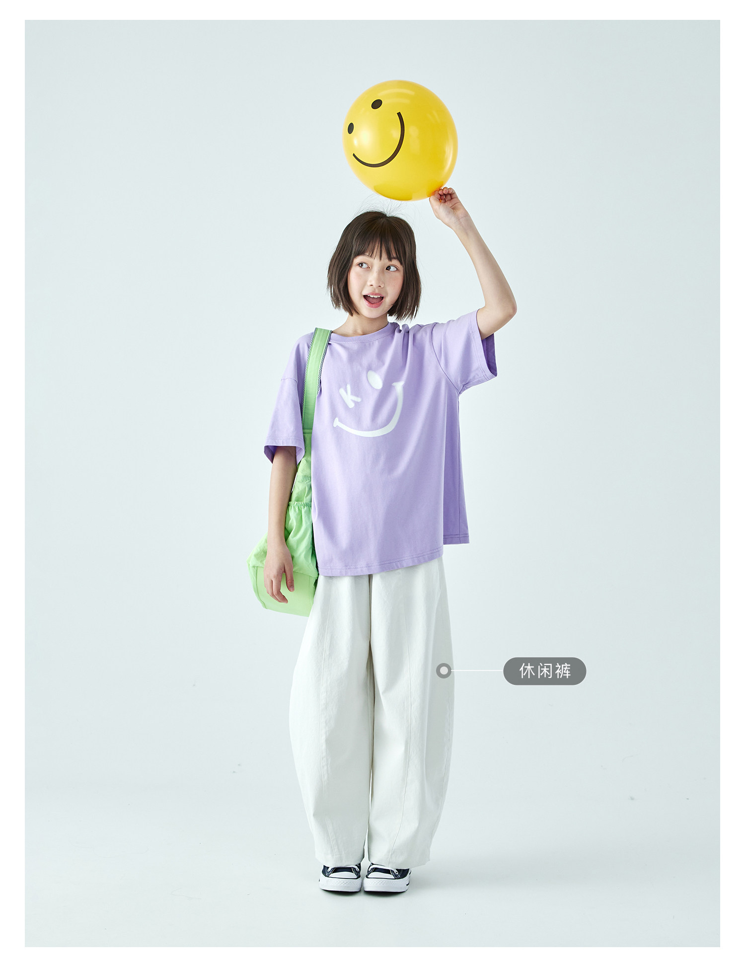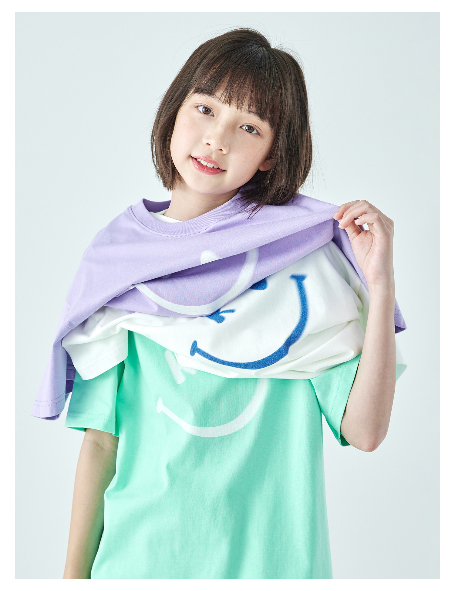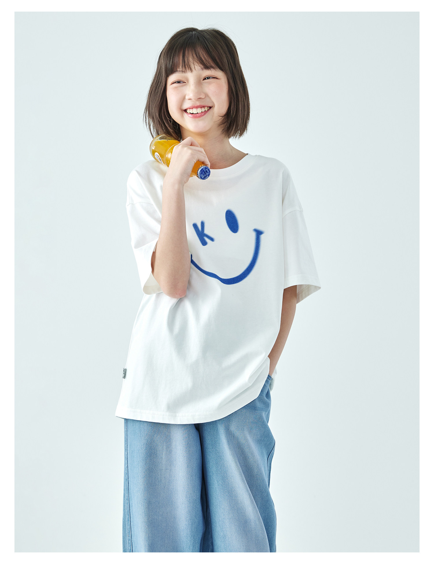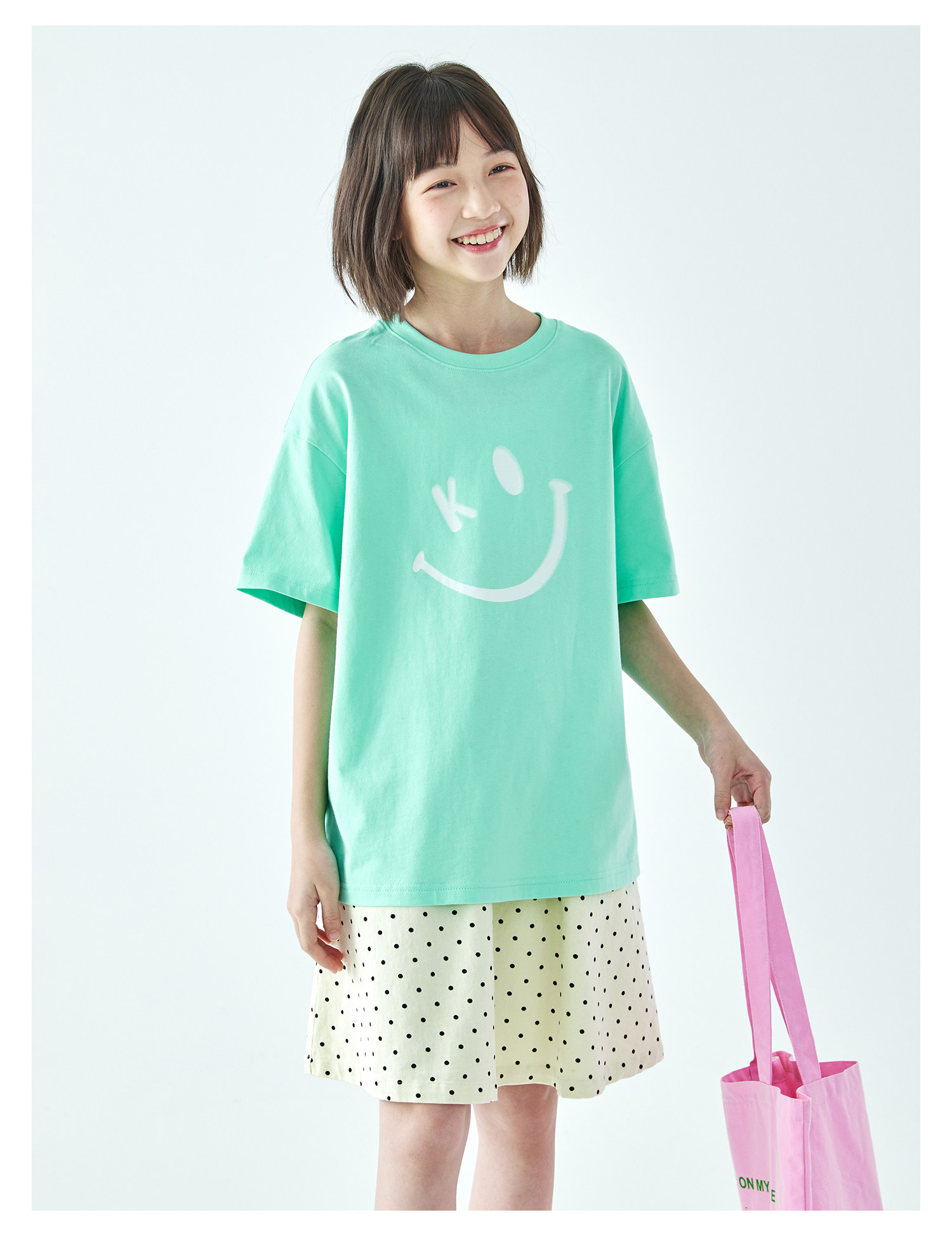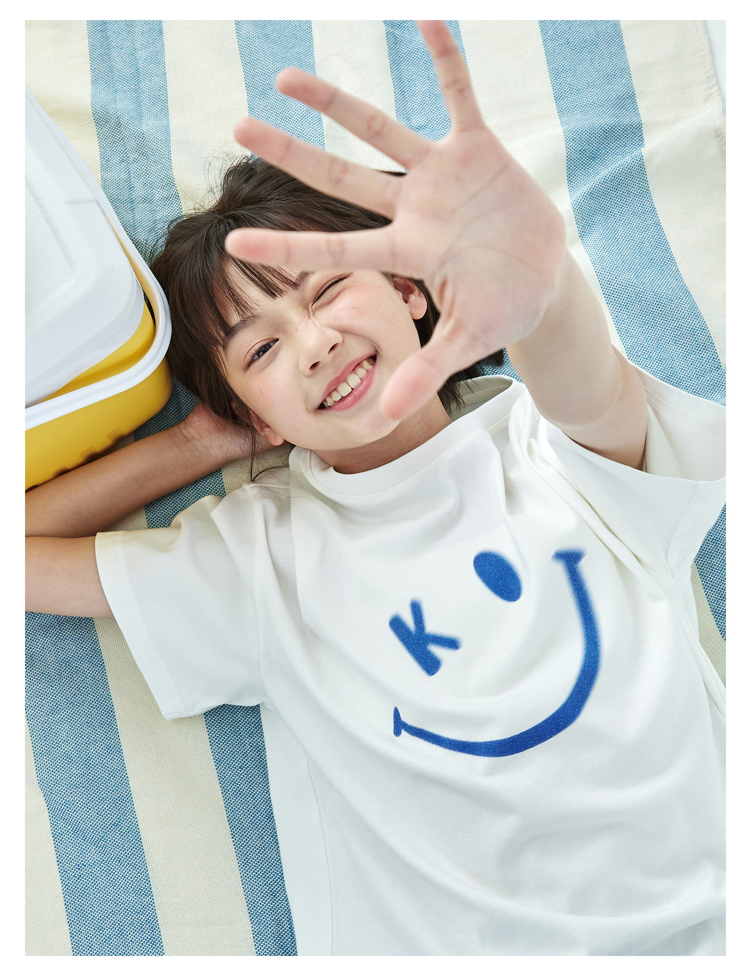 棵初「开心果T」2026年夏季新款亲子中大女童笑脸印花T恤纯棉短袖