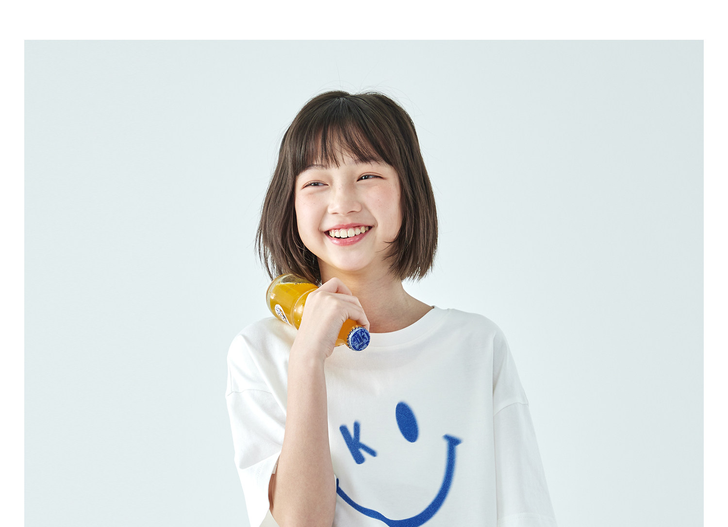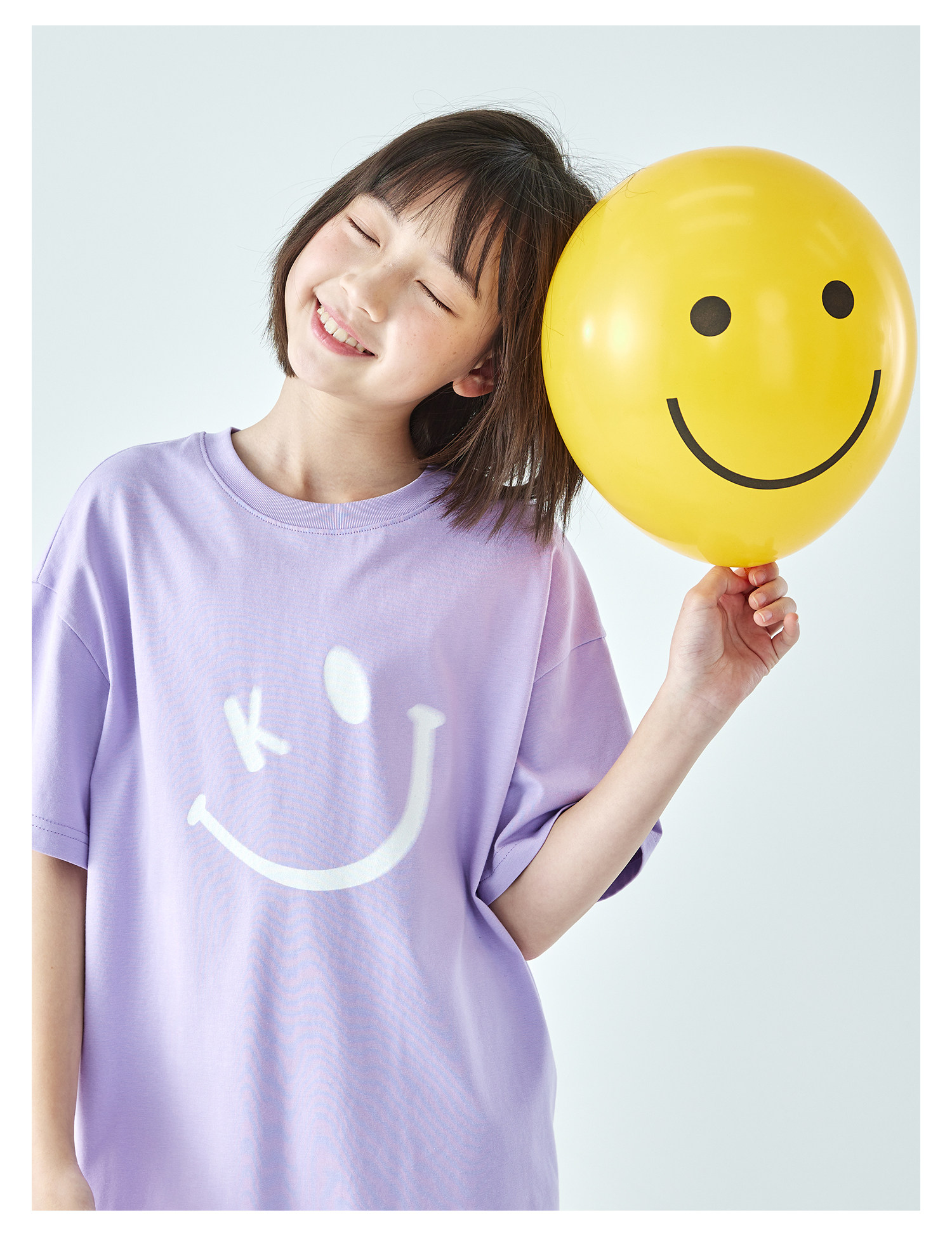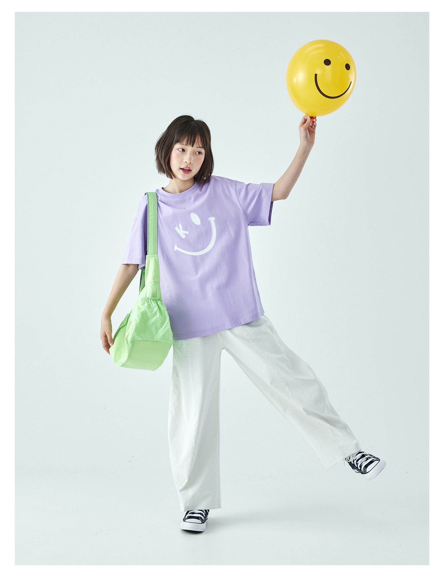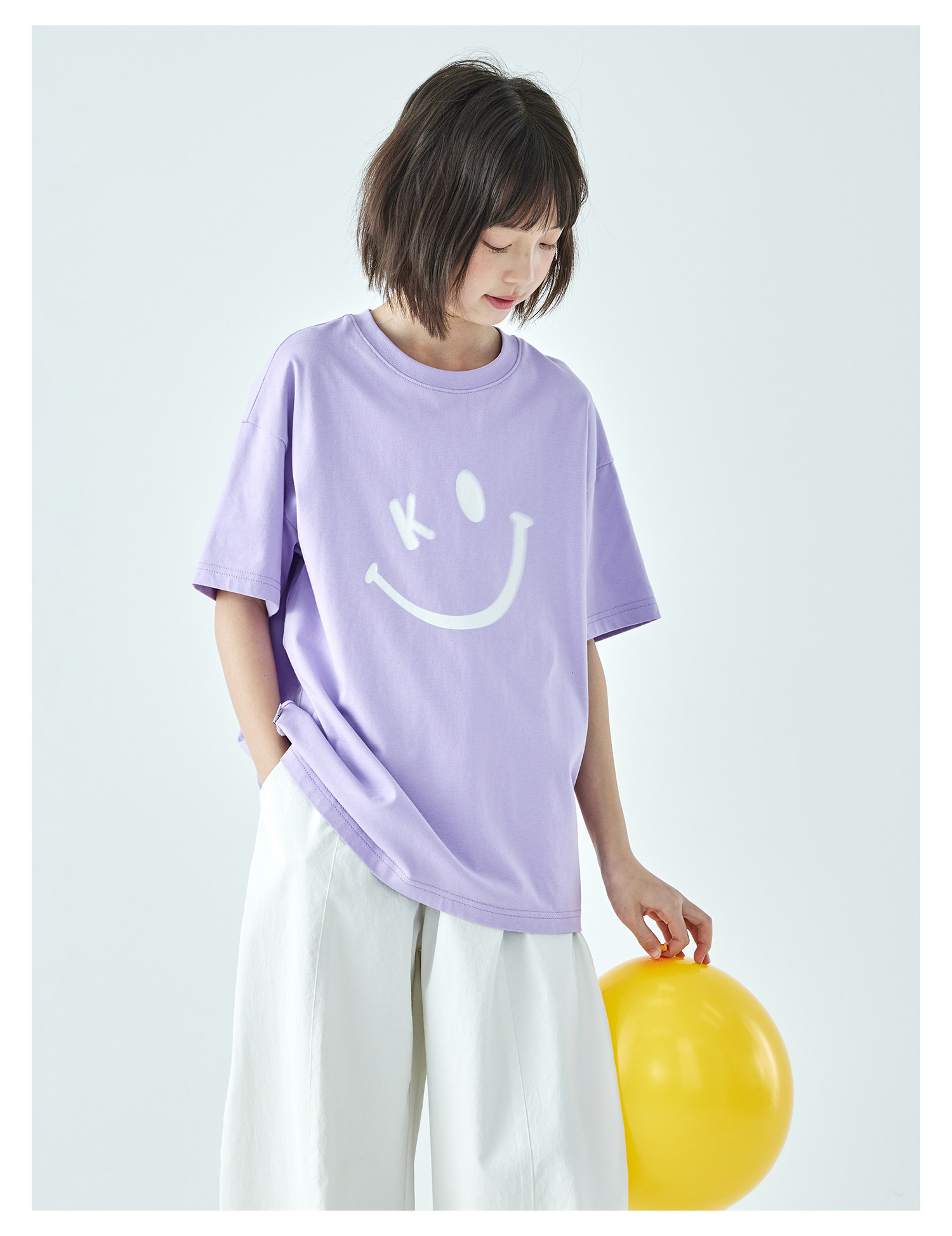棵初「开心果T」2026年夏季新款亲子中大女童笑脸印花T恤纯棉短袖