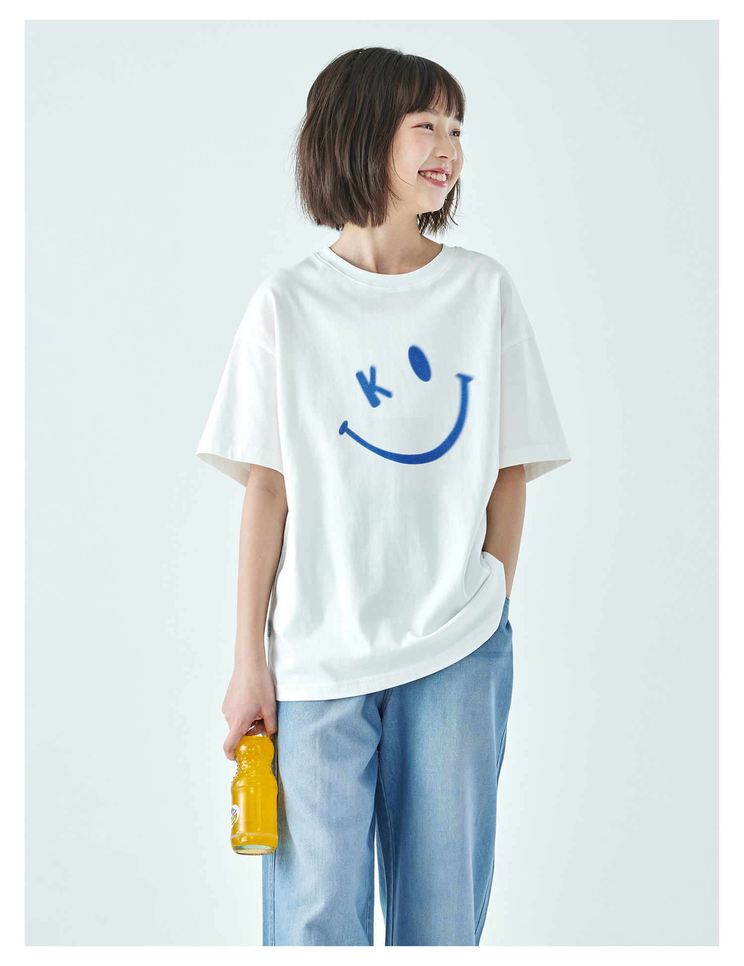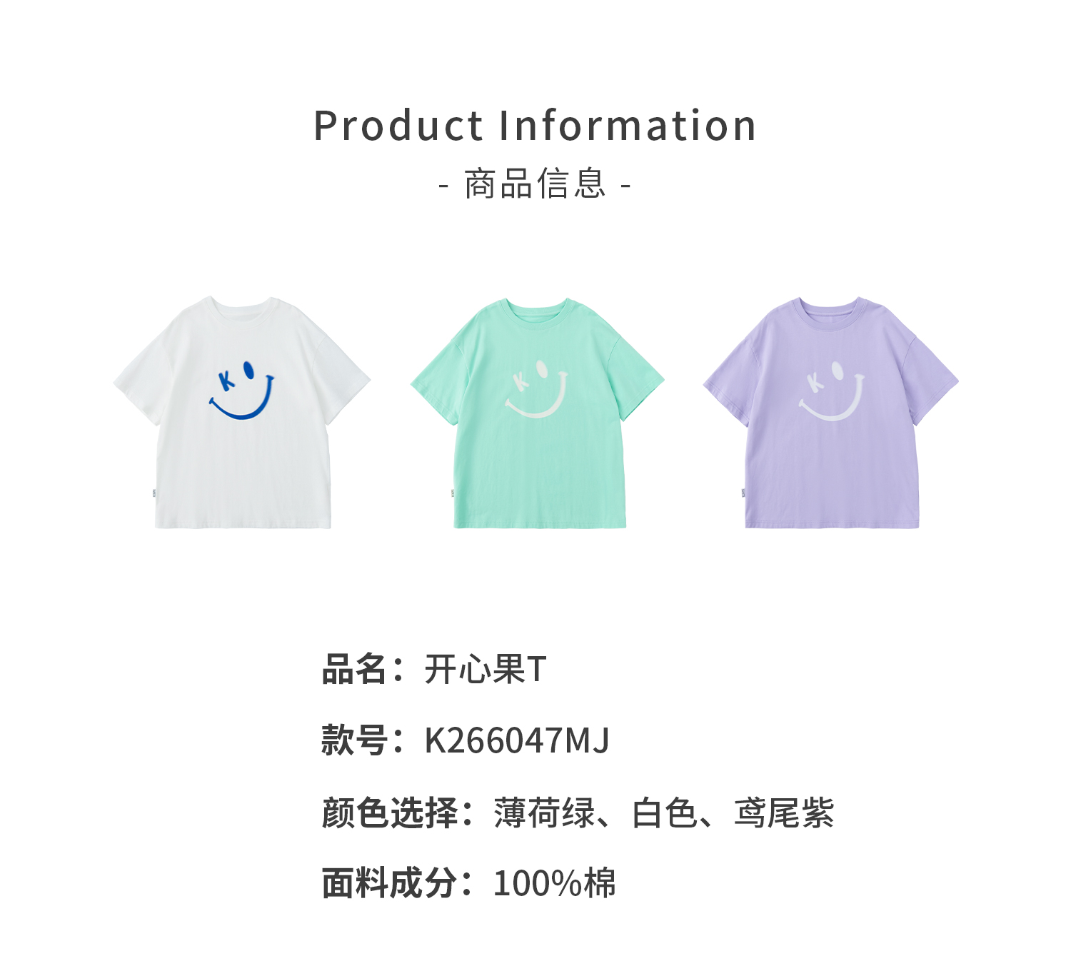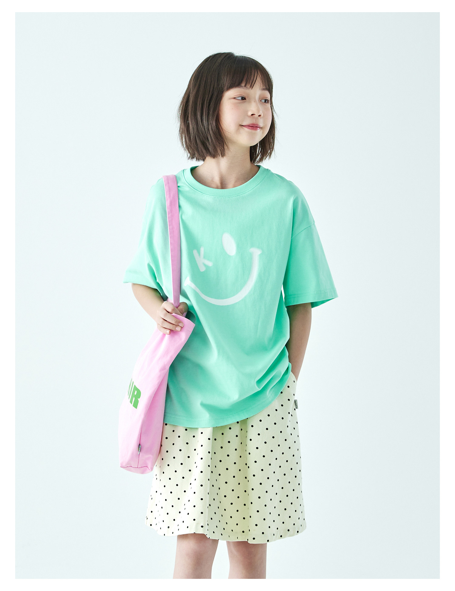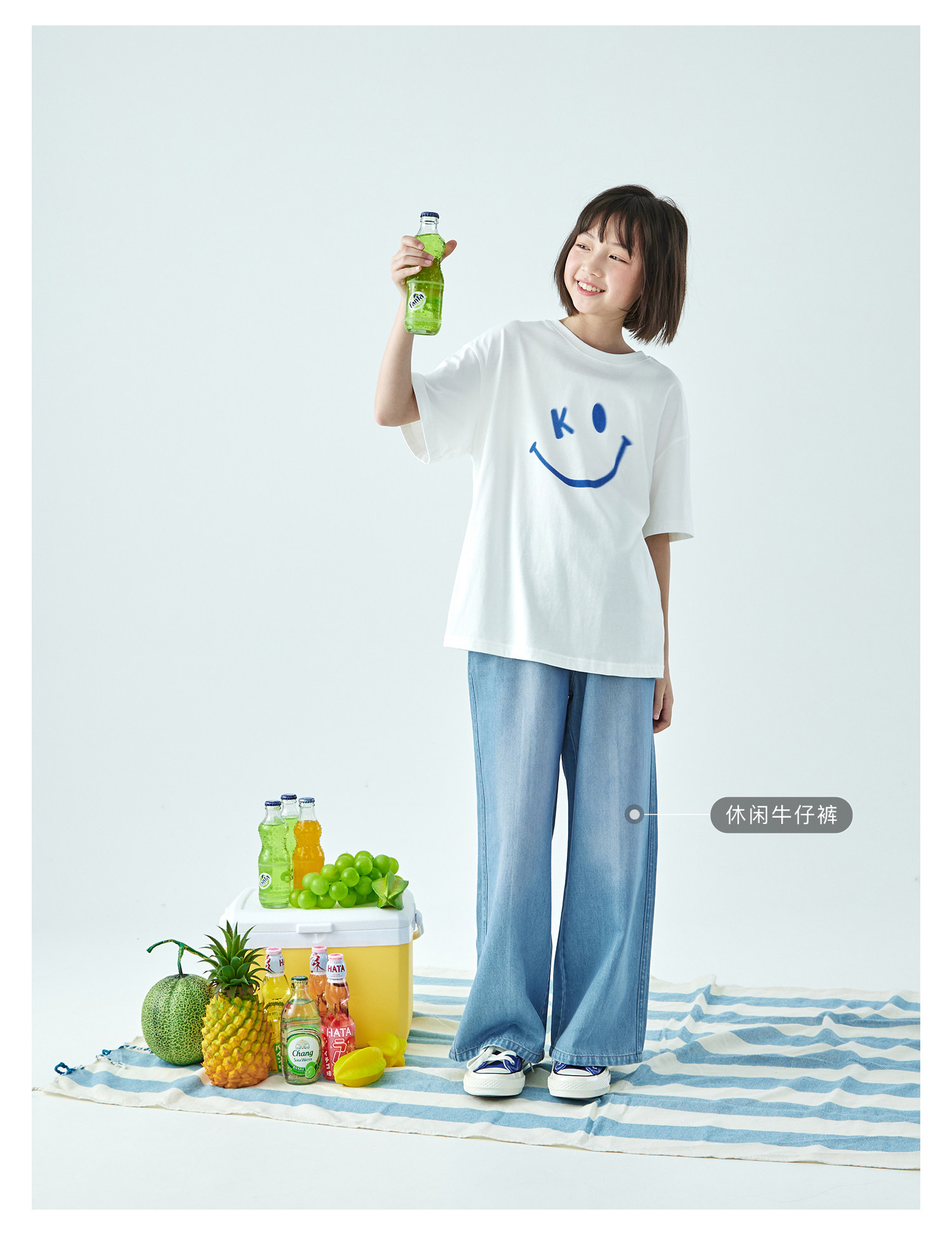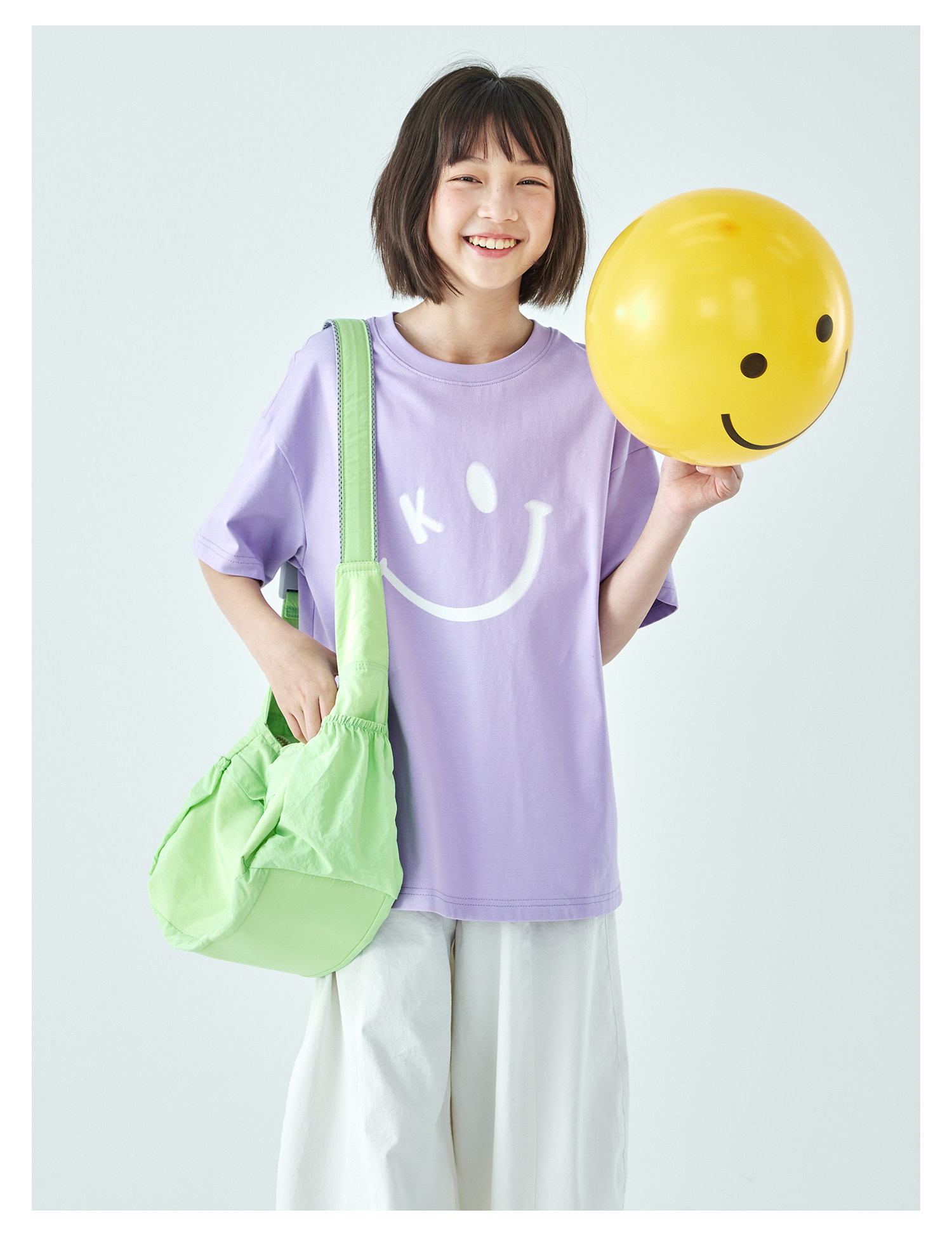棵初「开心果T」2026年夏季新款亲子中大女童笑脸印花T恤纯棉短袖
