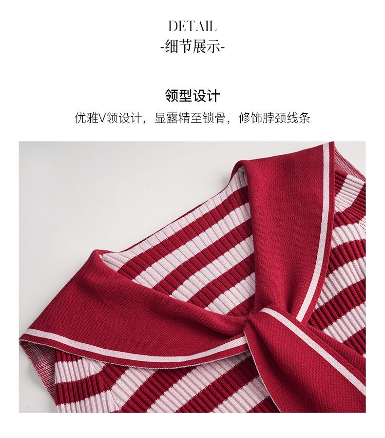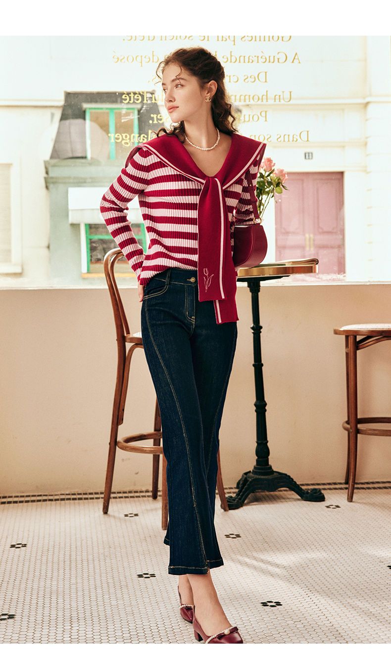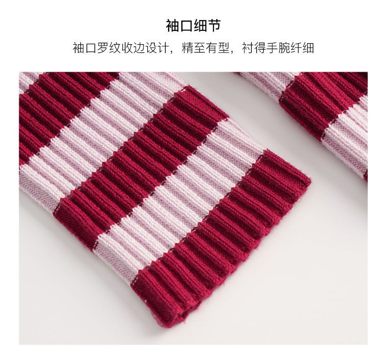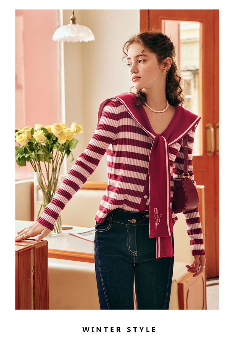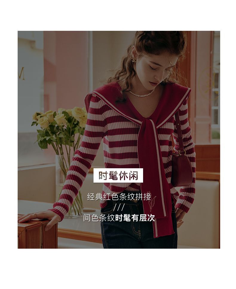 OLrain欧芮儿法式条纹毛衣女秋季2025年新款刺绣v领披肩款针织衫