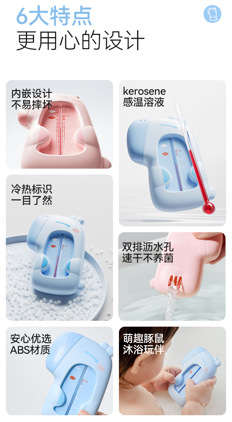 婴儿水温计宝宝洗澡测水温表卡家用萌趣精准洗澡温度计