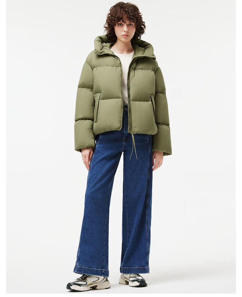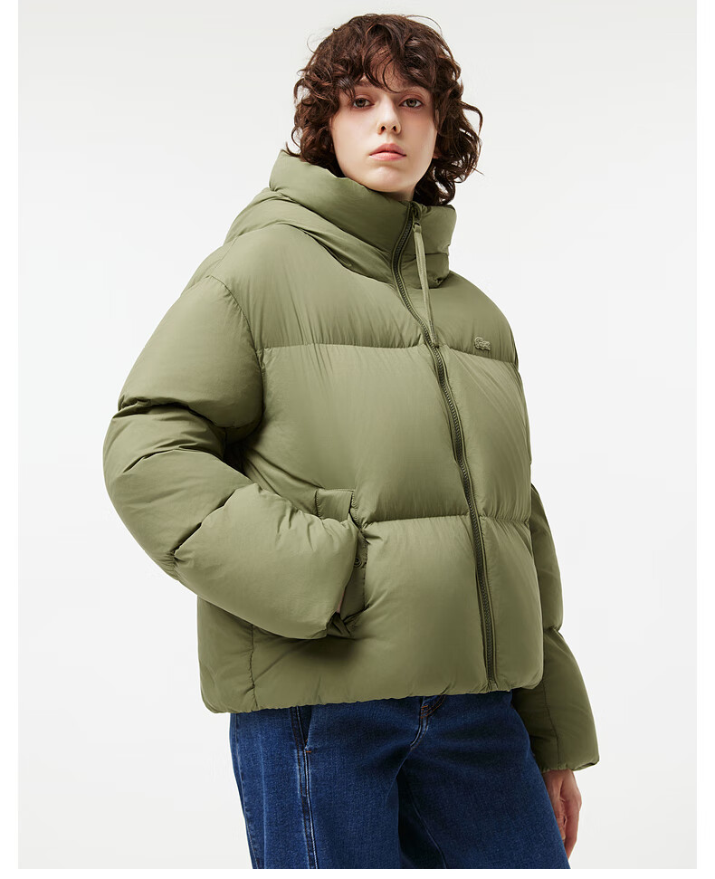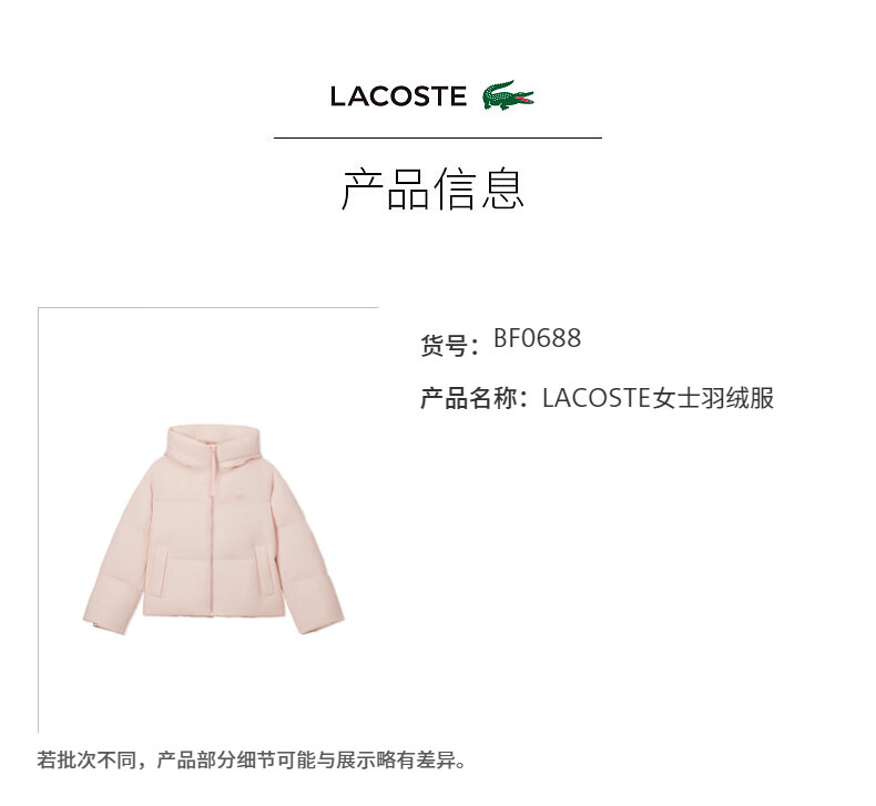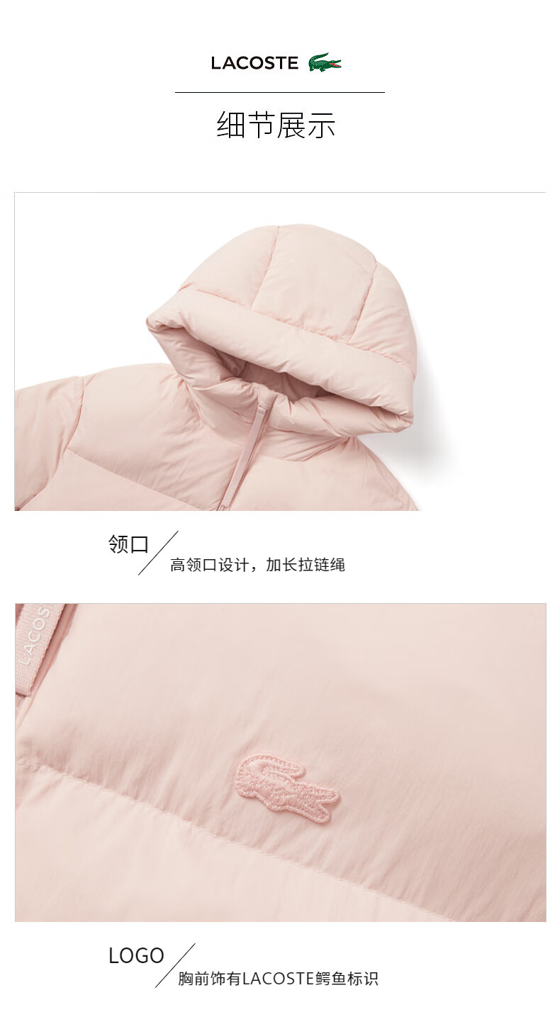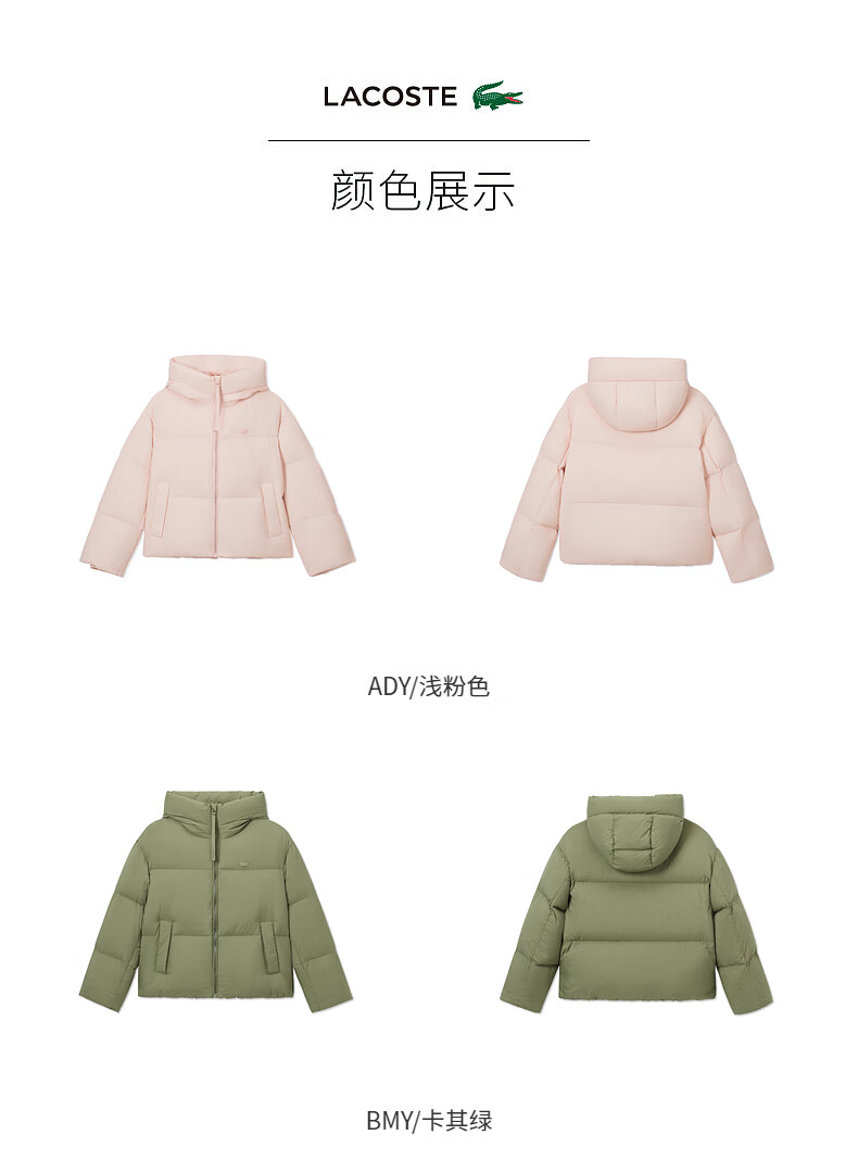 Lacoste法国鳄鱼女装新款纯色保暖连帽拉链鹅绒羽绒服外套BF0688-98