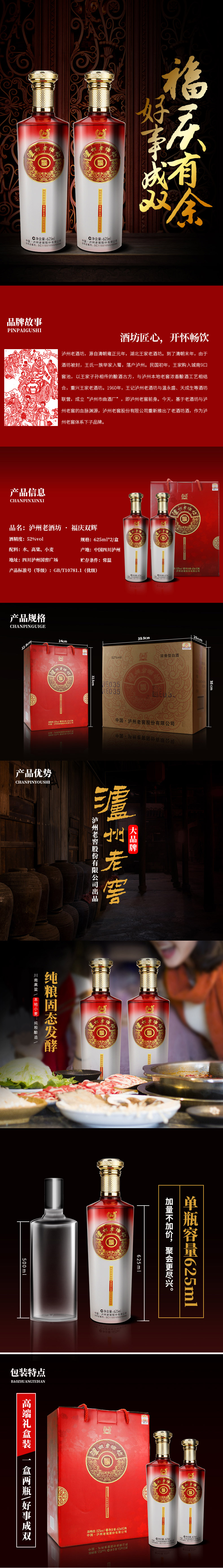 下架【泸州老窖】52泸州老酒坊福庆双辉酒625ml*2