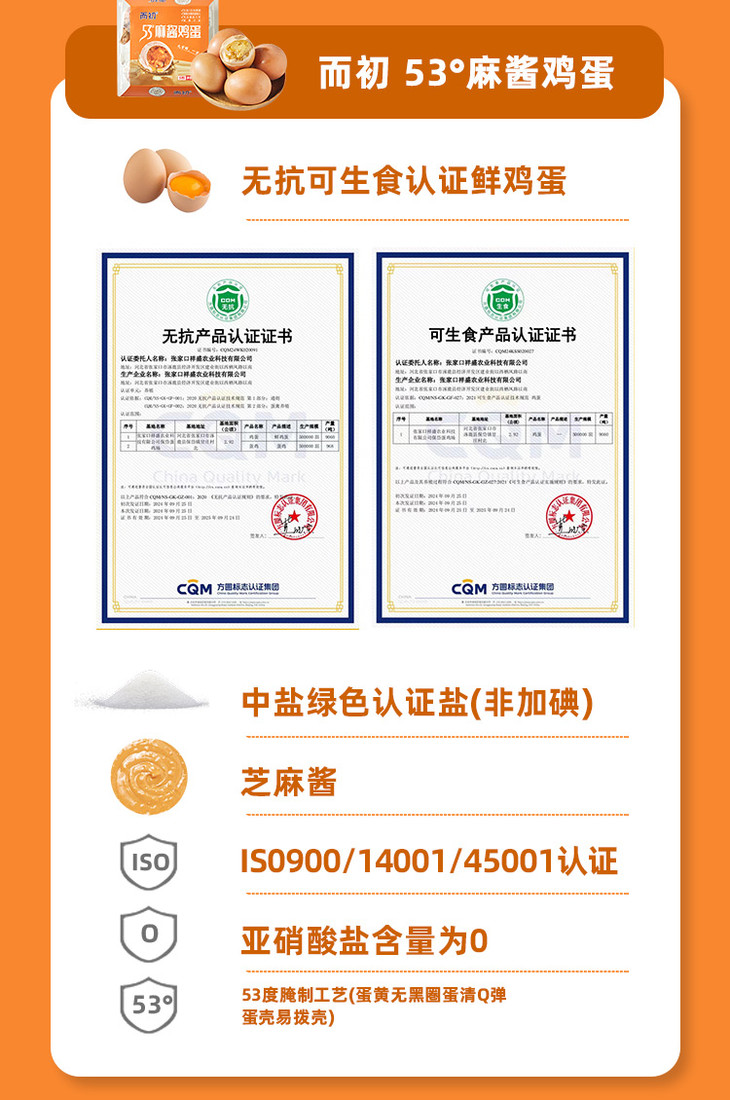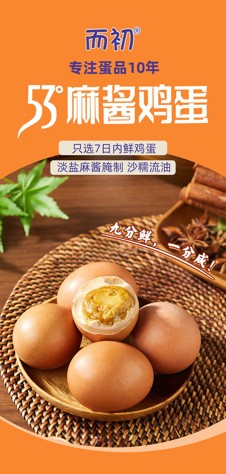优选新鲜无抗可生食鲜鸡蛋,古法工艺,淡盐慢腌制,芝麻酱和多种香料精心配比;