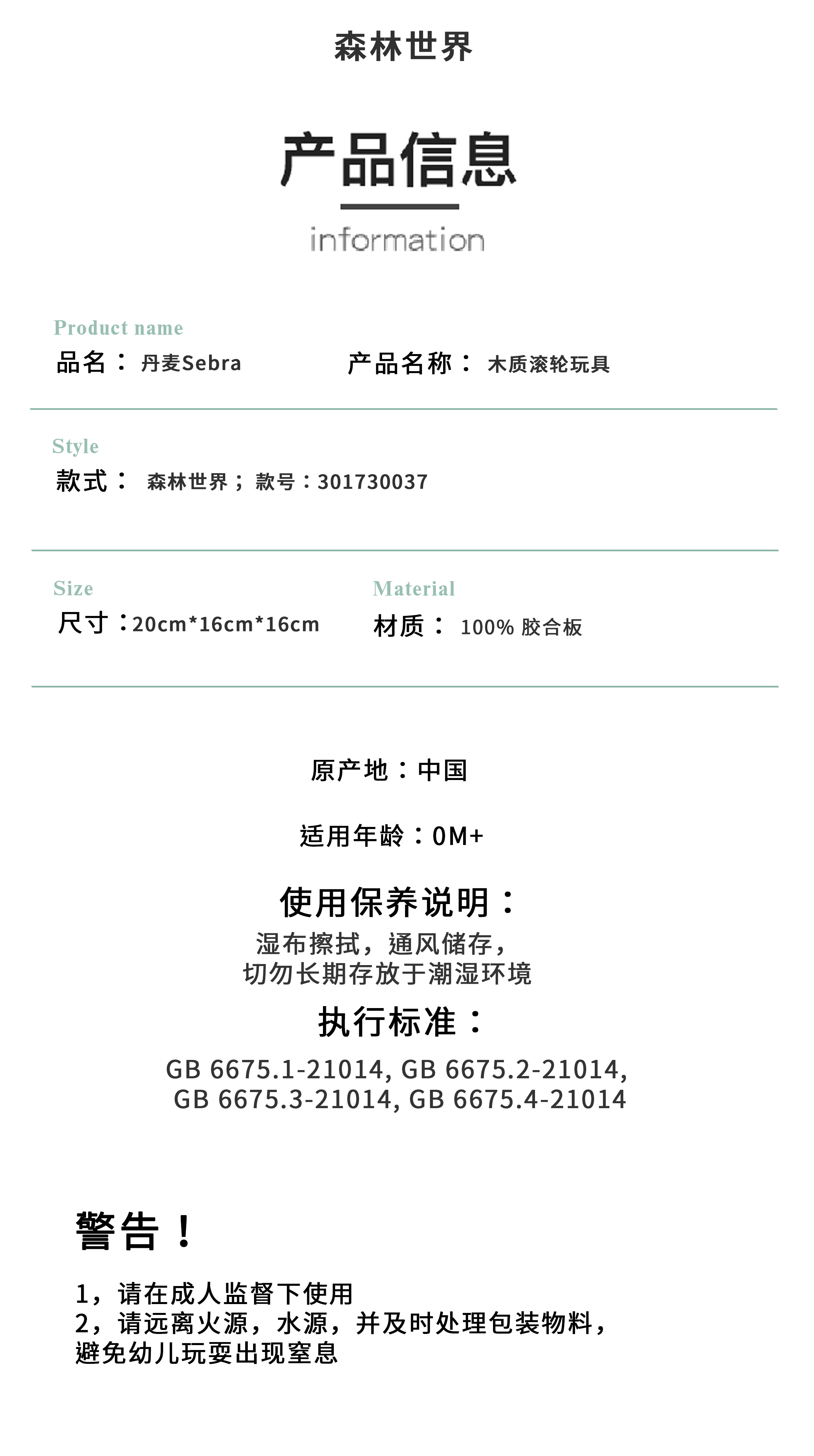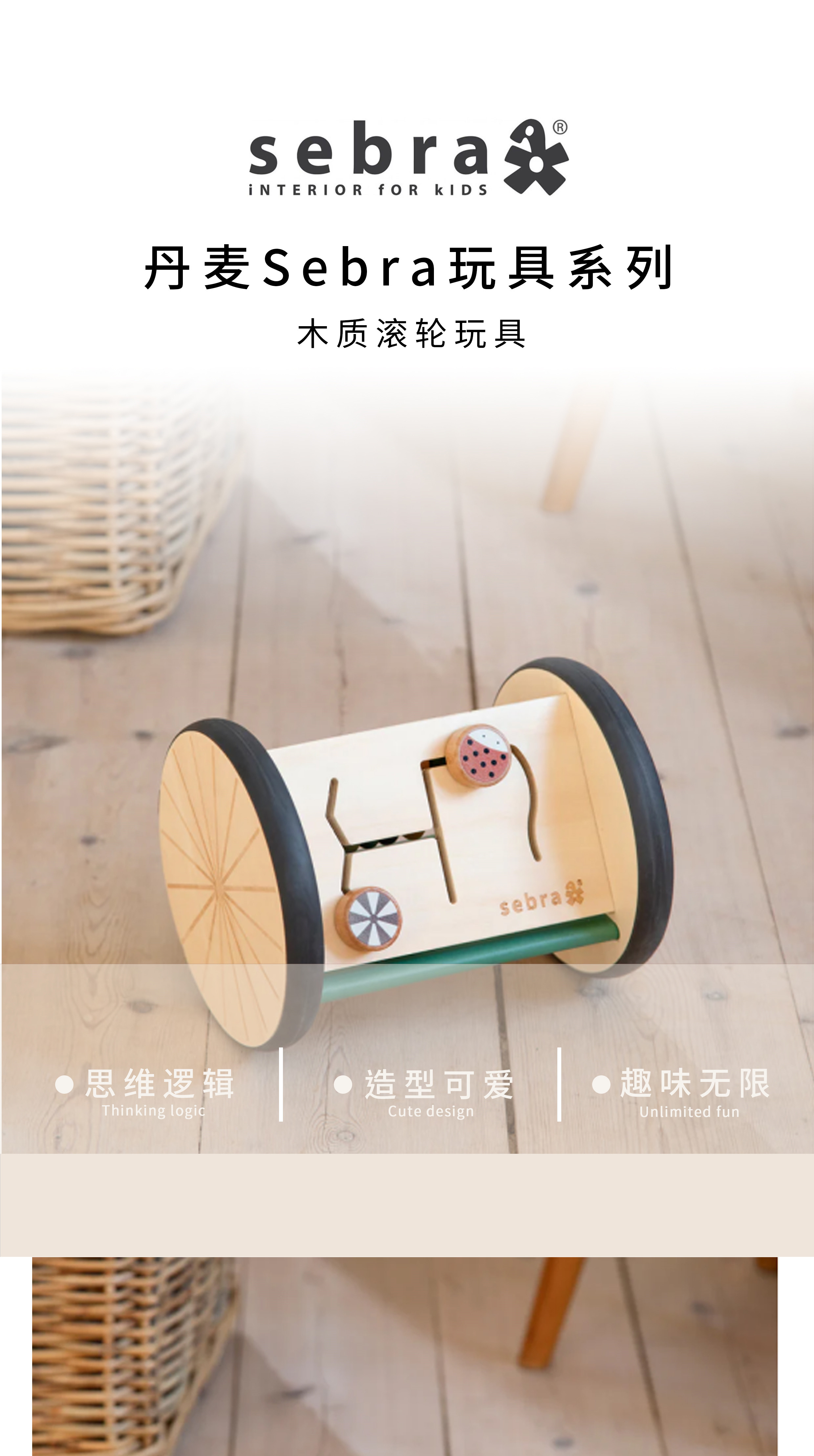Sebra 木质滚轮玩具 宝宝益智色彩认知 20cm*16cm*16cm 0+