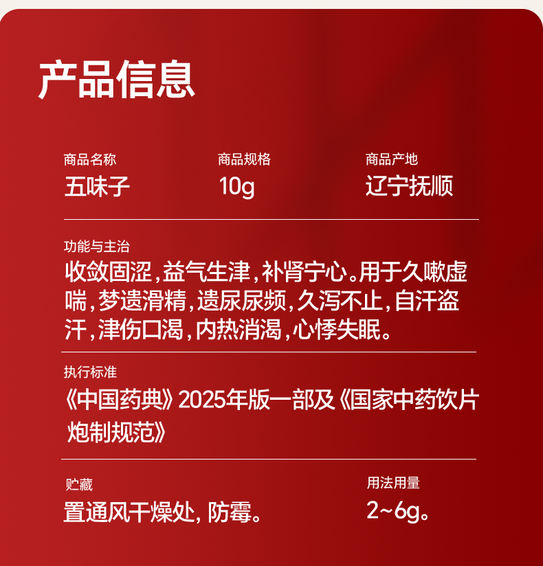 五味子中药材 官方正品 泡水泡酒两相宜 滋补养生