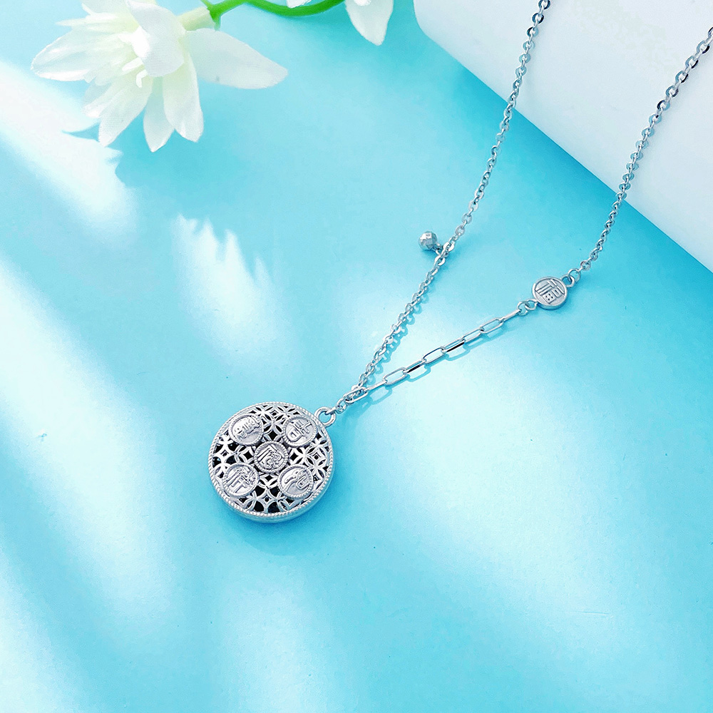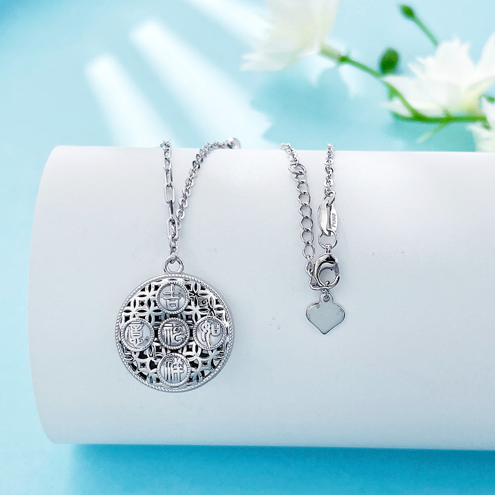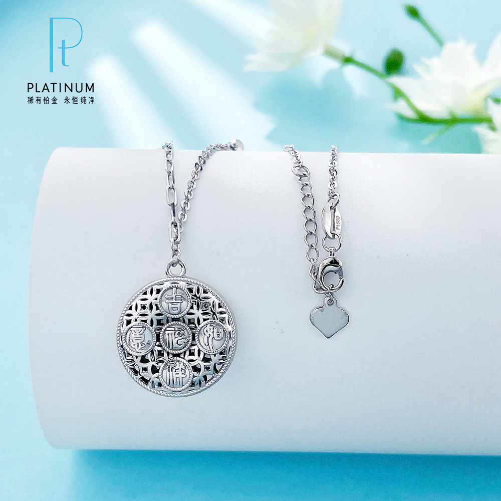 【限时8.8折】【线上铂金馆】PT950 【国际铂金协会】铂金镂空可调节如意吉祥平安福套链(BTL00388)预售产品下单后不退款不退货不换货不补差价)