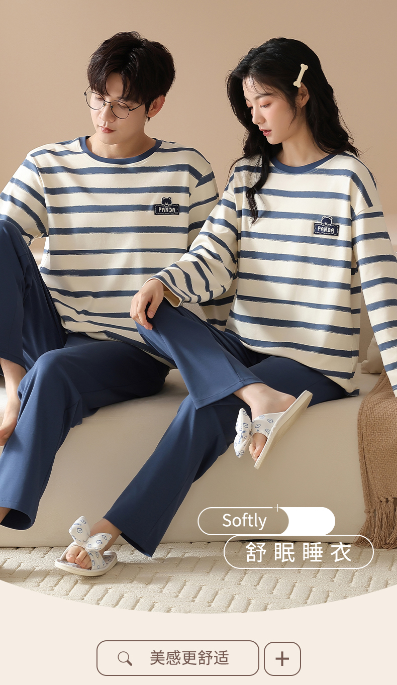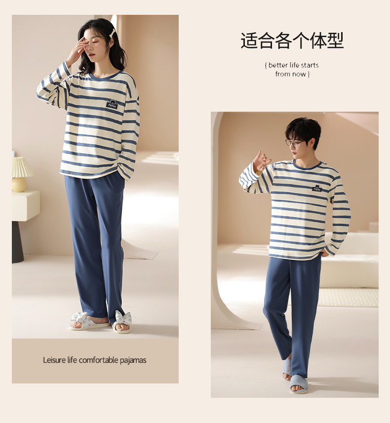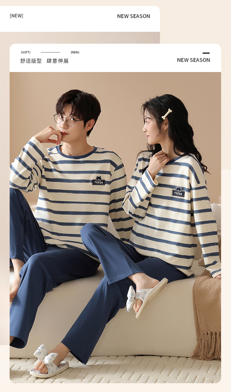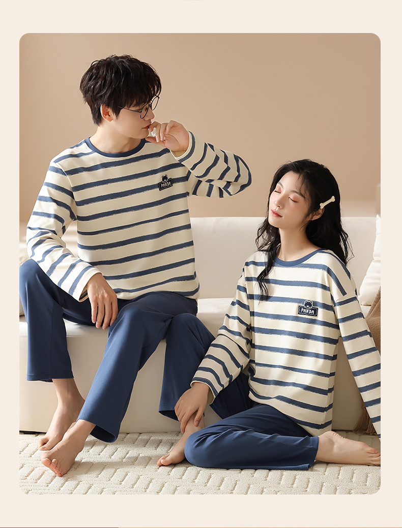 爱帝情侣圆领套头长袖家居服男女同款