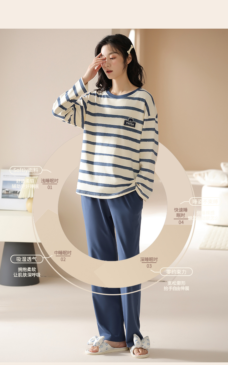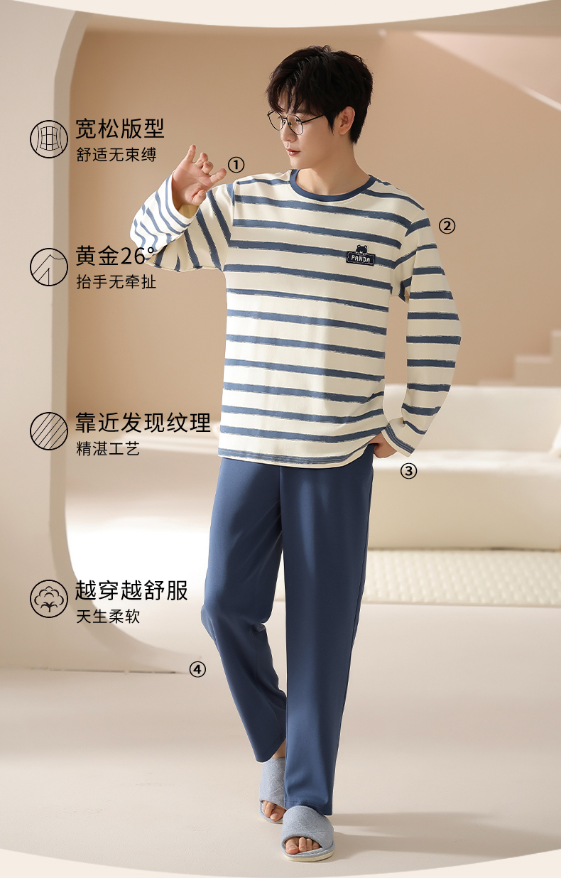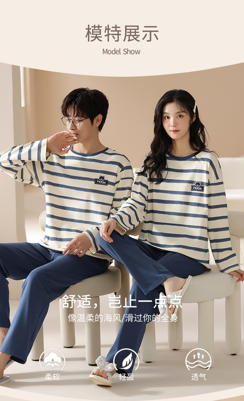 爱帝情侣圆领套头长袖家居服男女同款