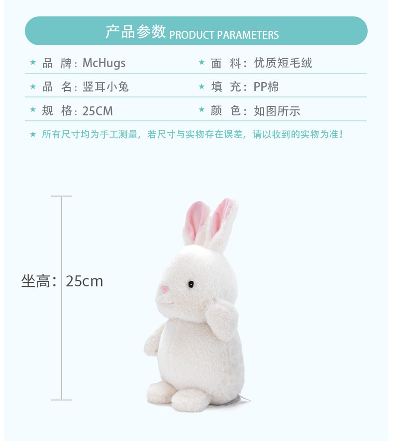 英国MCHugs 竖耳兔Ula 竖耳小兔卡通儿童安抚布娃娃公仔睡觉抱枕礼物