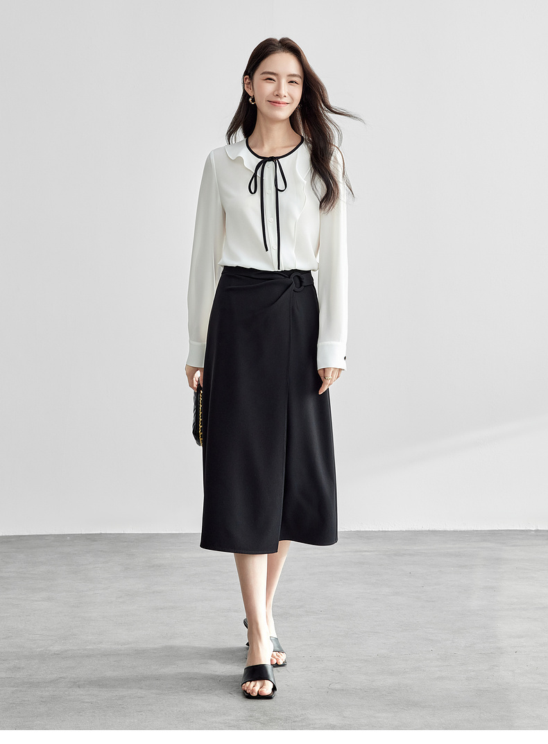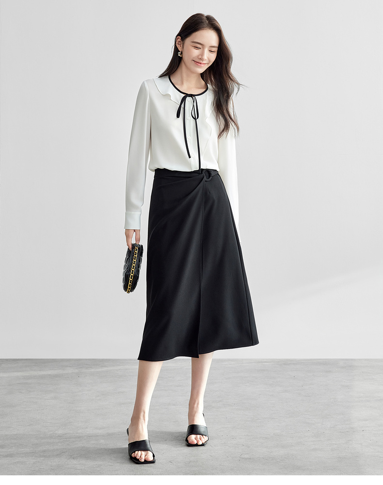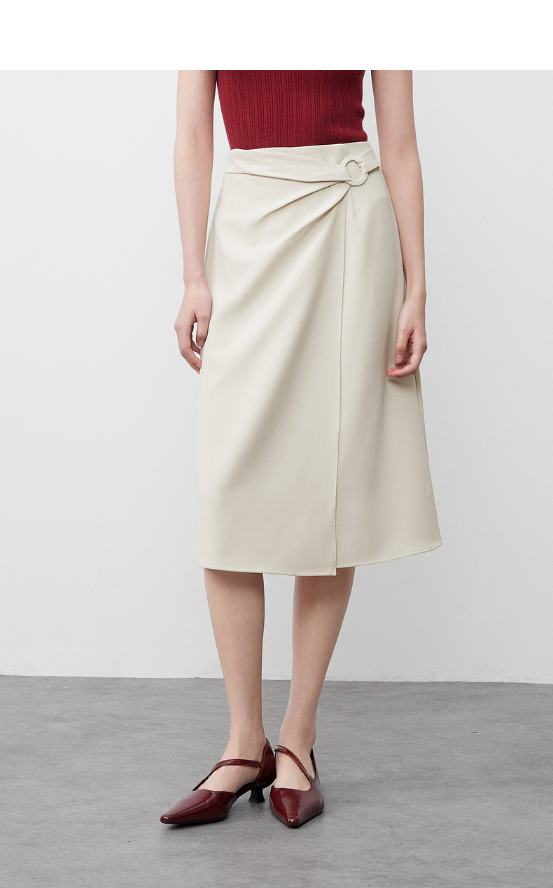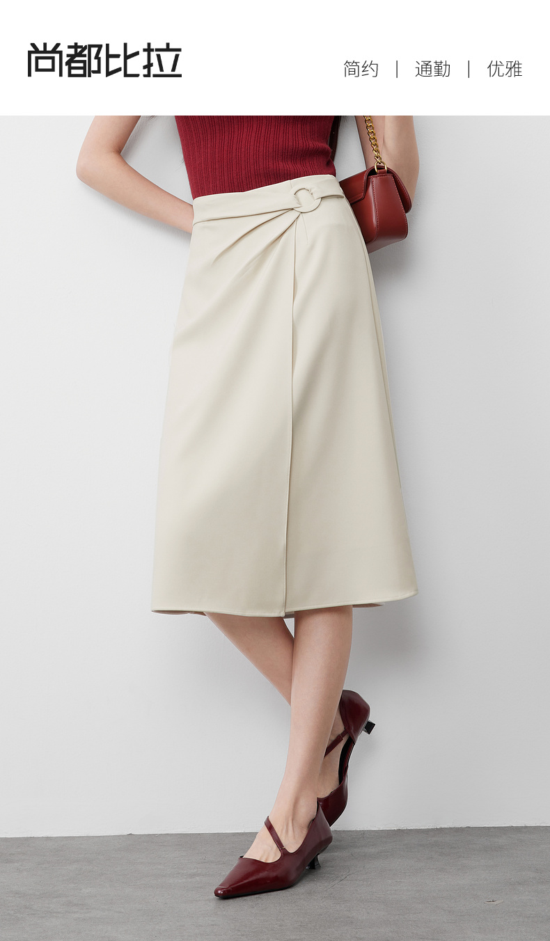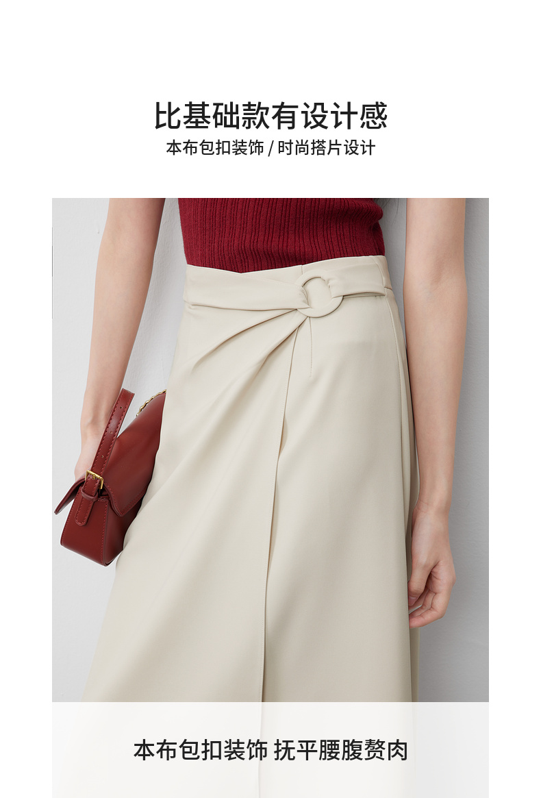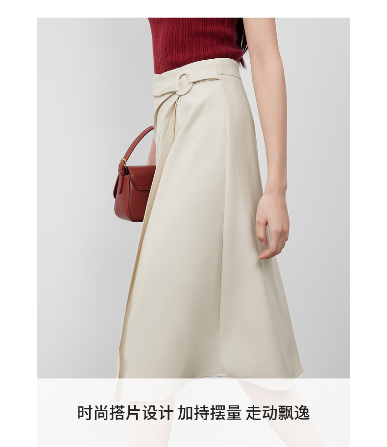【内购】气质通勤搭片式显瘦A字裙圆形本布包扣垂感半身裙-57507
