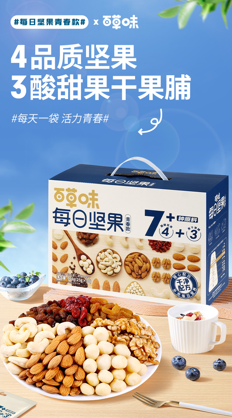 【专享】每日坚果 混合果仁果脯水果干 750g (青春款)★