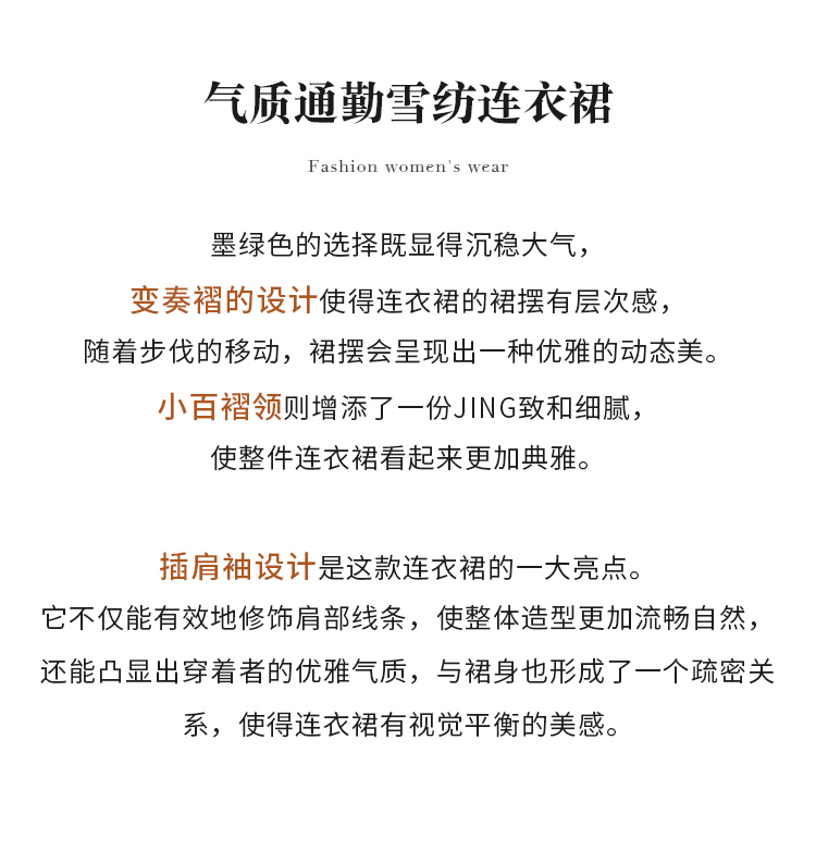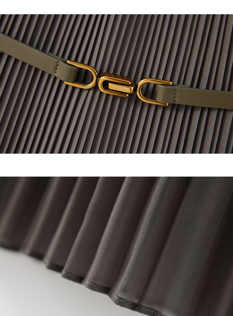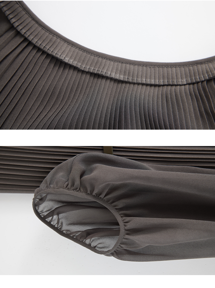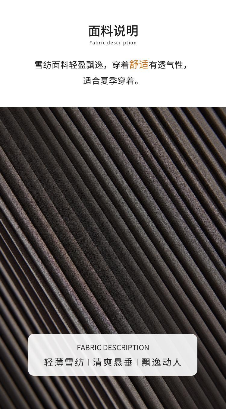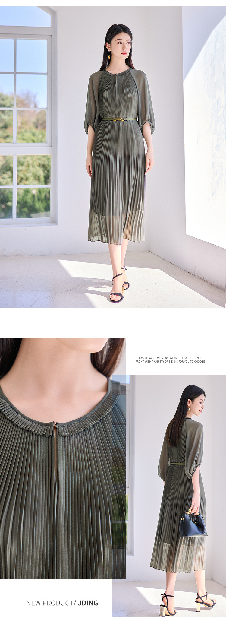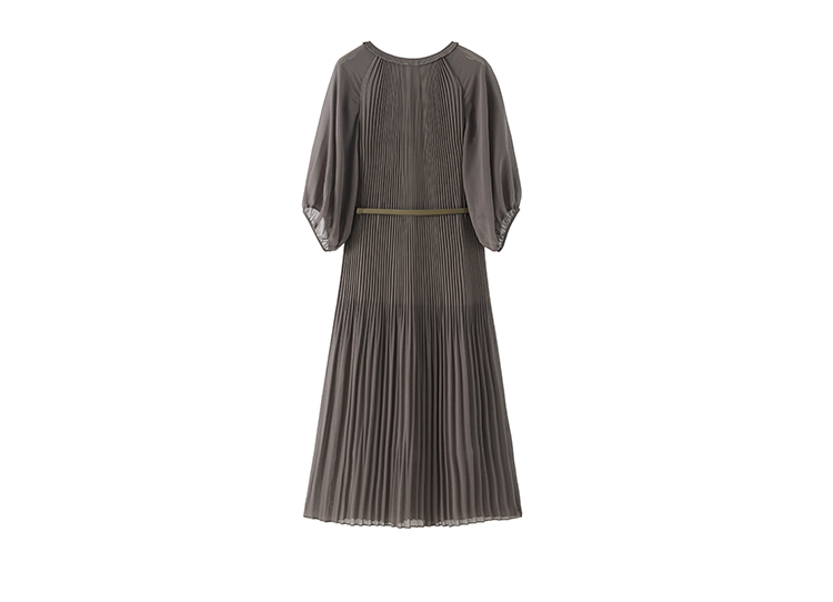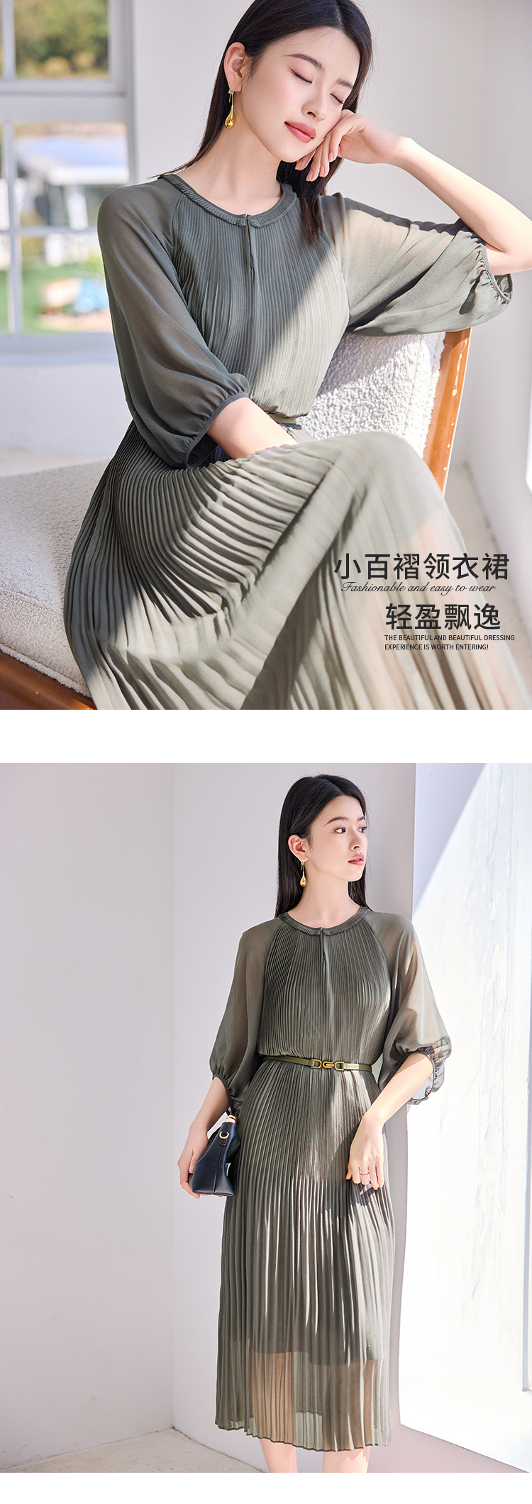 【商场同款】CJDJ502 “ 风琴褶连衣裙 ” 橄榄色自然雅致 高温一体成型压褶技术水洗不开褶 轻薄雪纺材质清爽悬垂