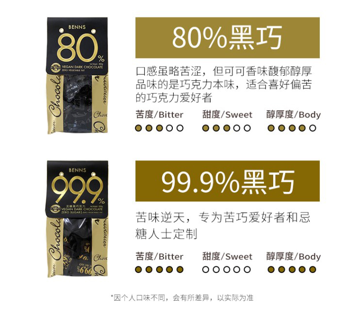 贝纳丝至醇99.9%无糖黑巧克力/80%至醇黑巧克力138g 优质可可豆还原可可风味 045393/045394