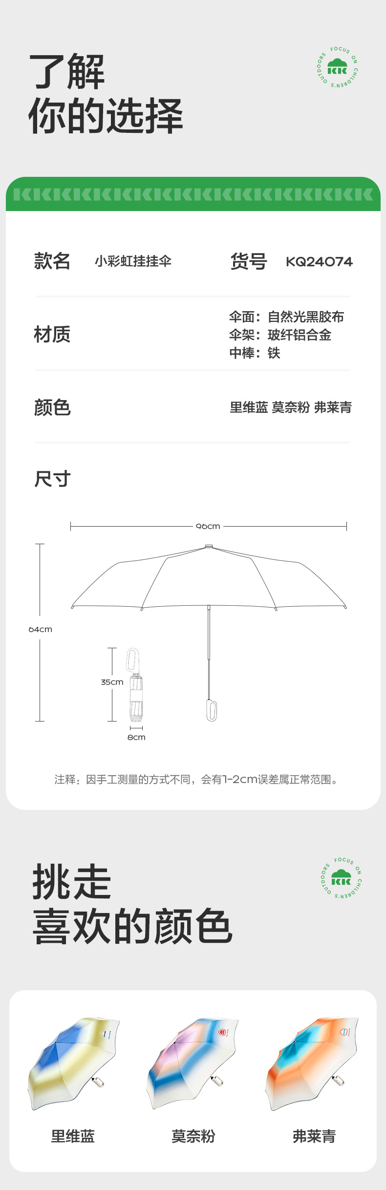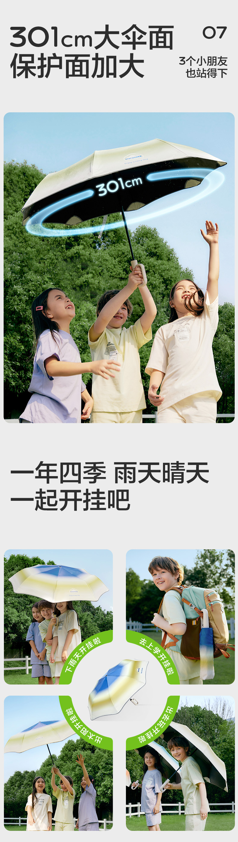 KK树儿童雨伞晴雨两用挂挂伞男童女孩小学生上学专用全自动折叠伞小彩虹挂挂伞