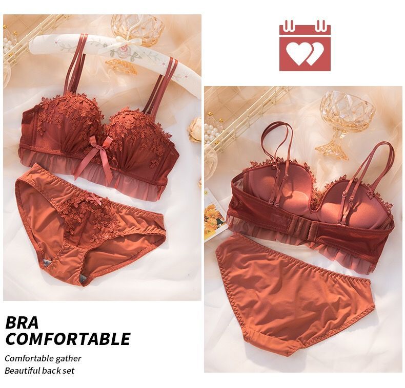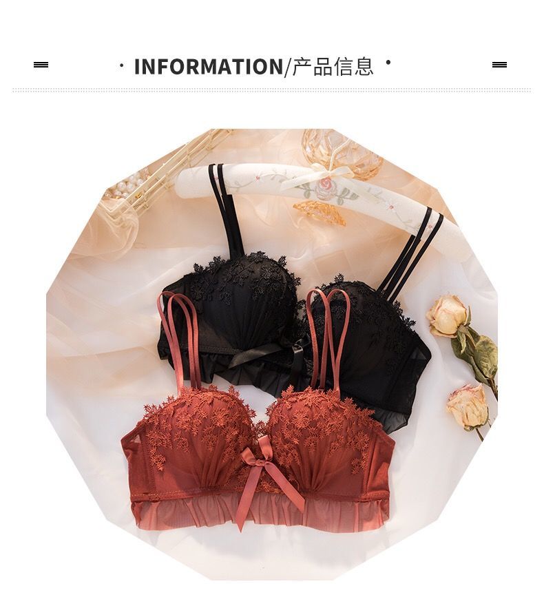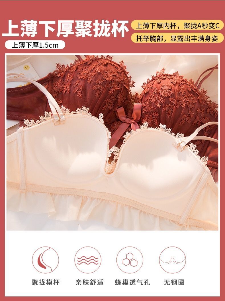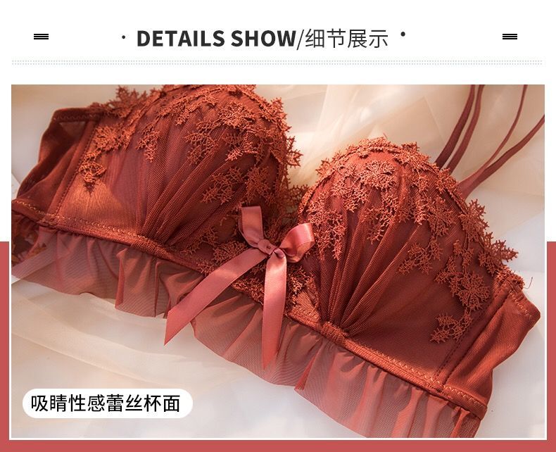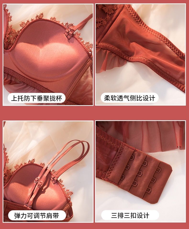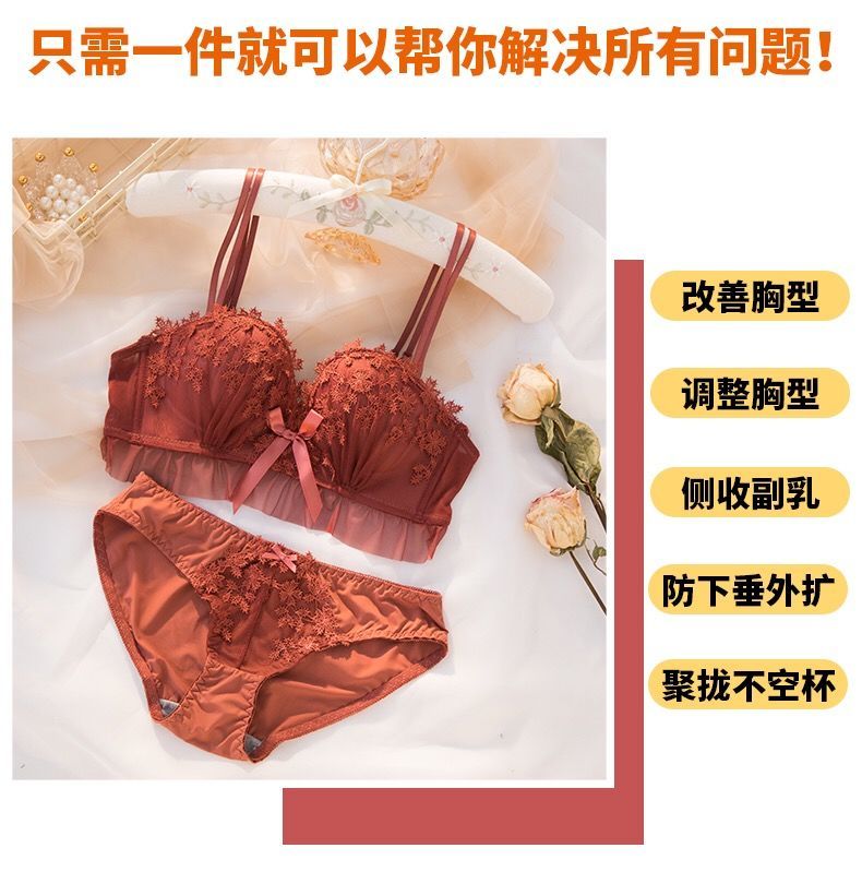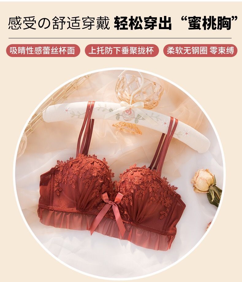 黛唯梵仙女梦本命年红色内衣女无钢圈美背交叉加厚性感蕾丝小胸聚拢文胸内衣裤套装
