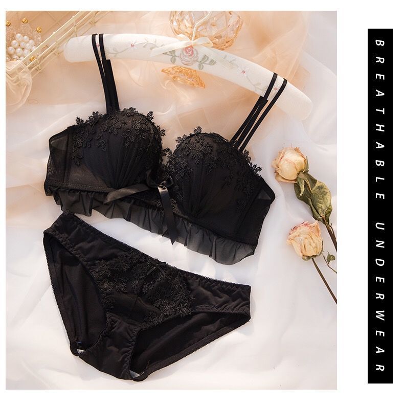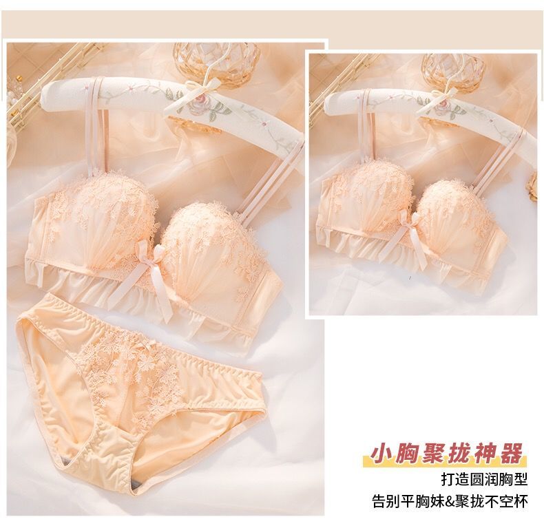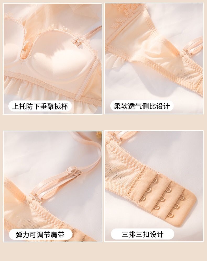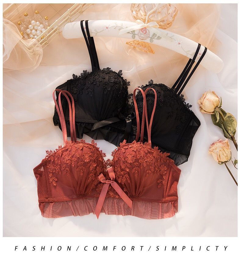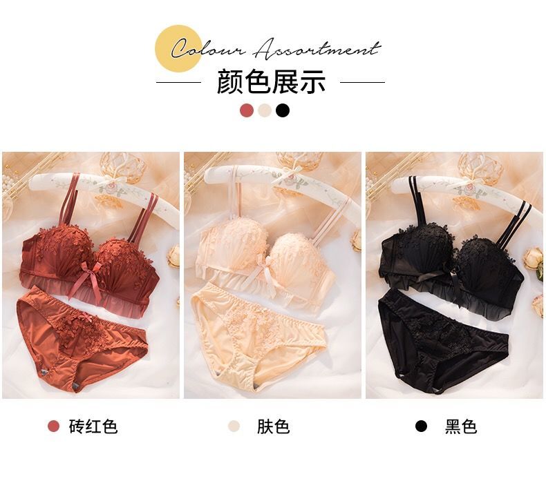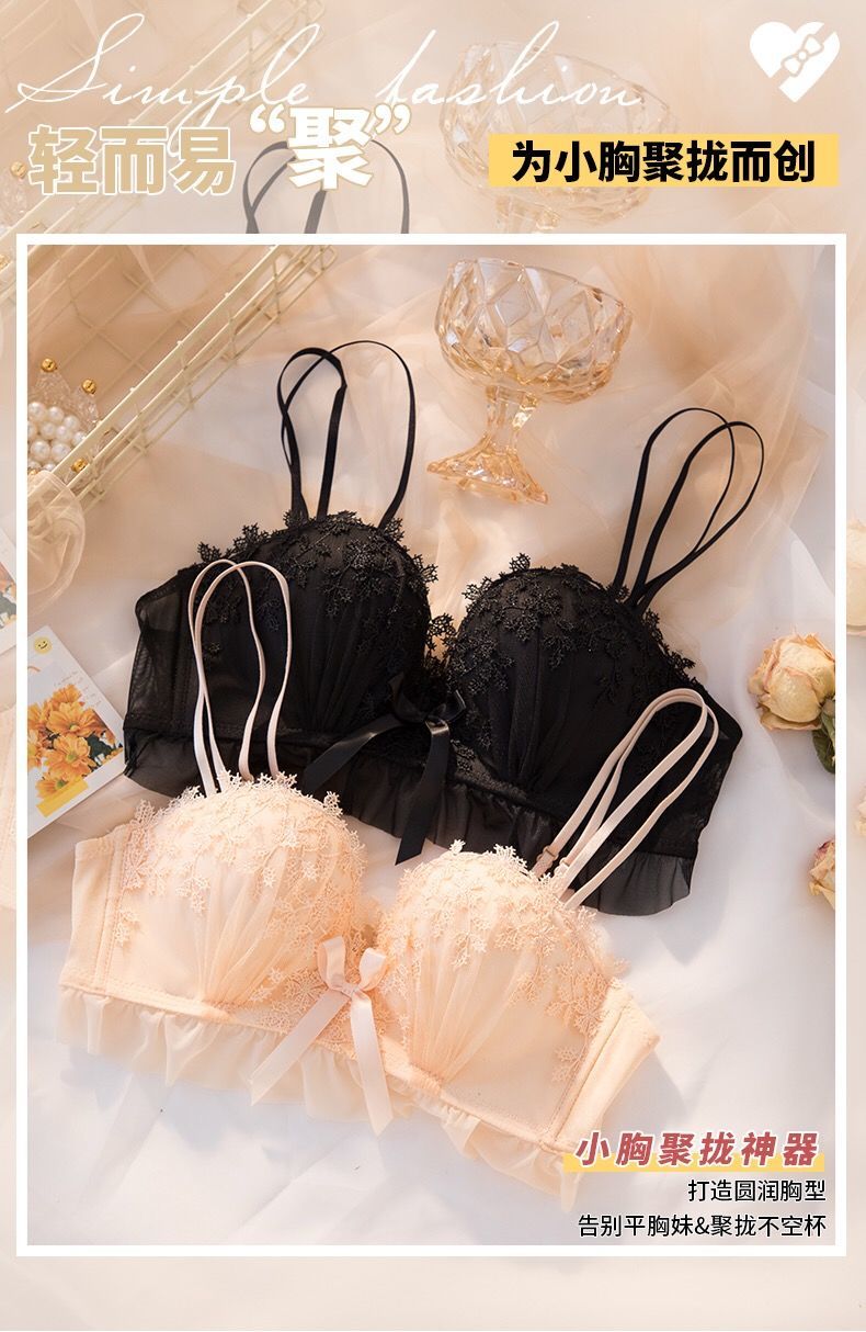 黛唯梵仙女梦本命年红色内衣女无钢圈美背交叉加厚性感蕾丝小胸聚拢文胸内衣裤套装