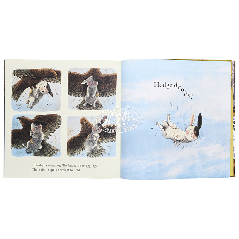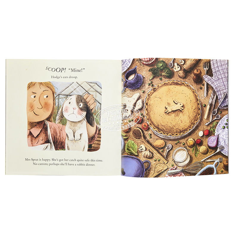 Mrs Sprat advances, wanting to get rid of the pesky bunny, and a buzzard overheard spies a tasty rabbit dinner, too. Can Hodge escape from bird of prey and angry gardener in time to take the carrots home?