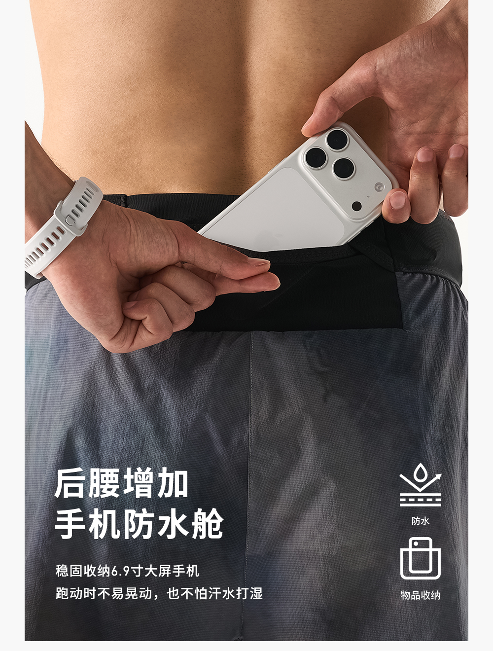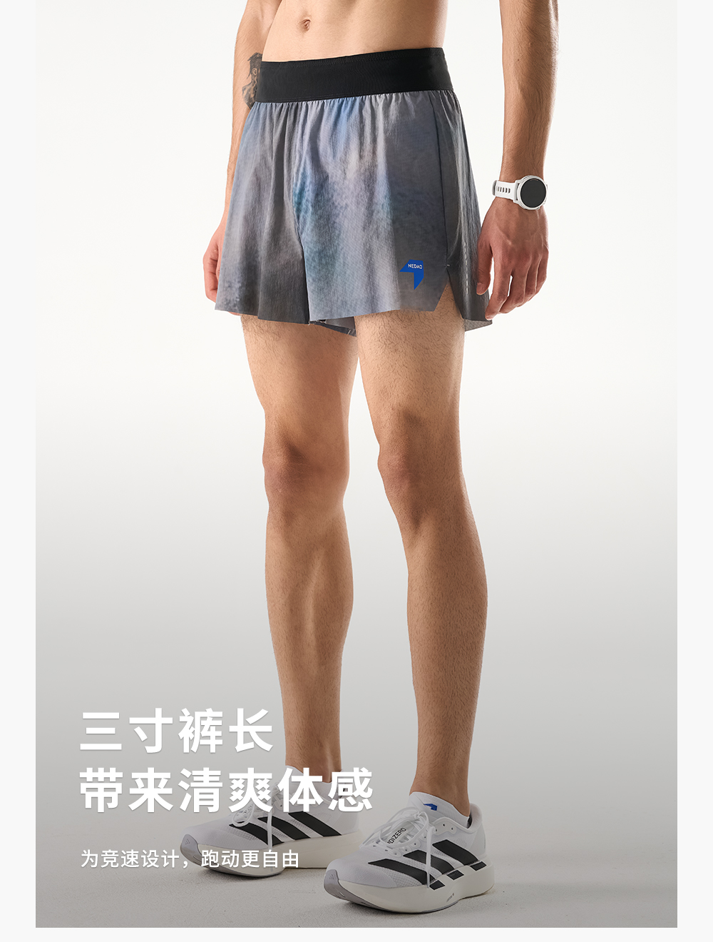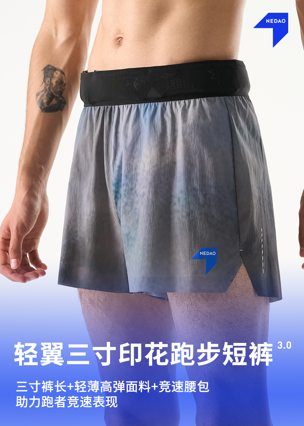 新品内道轻翼腰包3寸印花越野跑步短裤男女弹力运动跑步裤