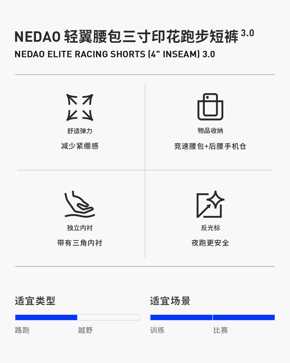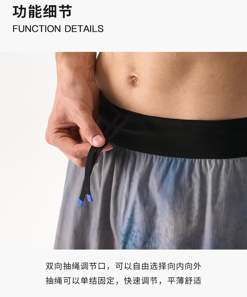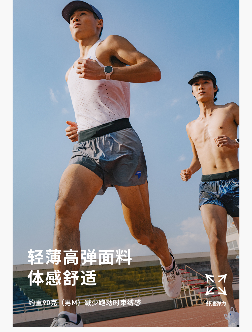 新品内道轻翼腰包3寸印花越野跑步短裤男女弹力运动跑步裤