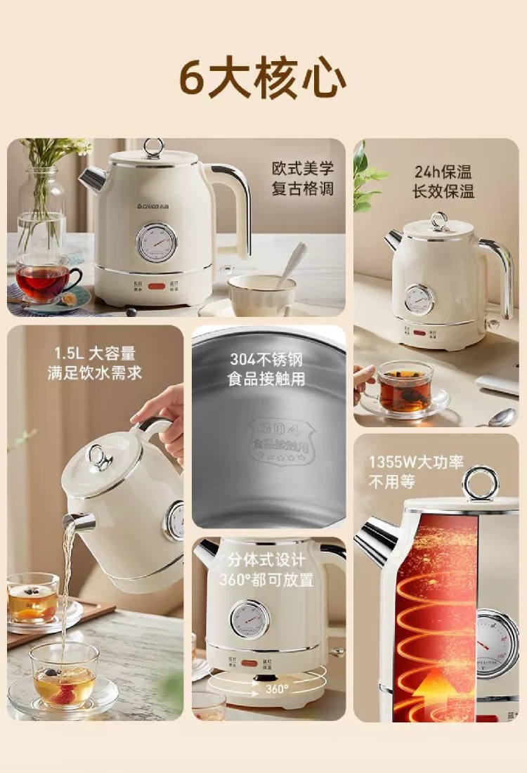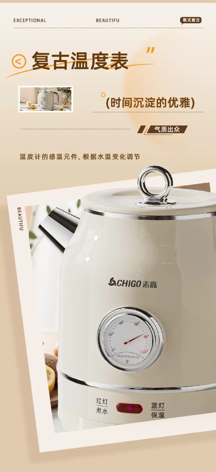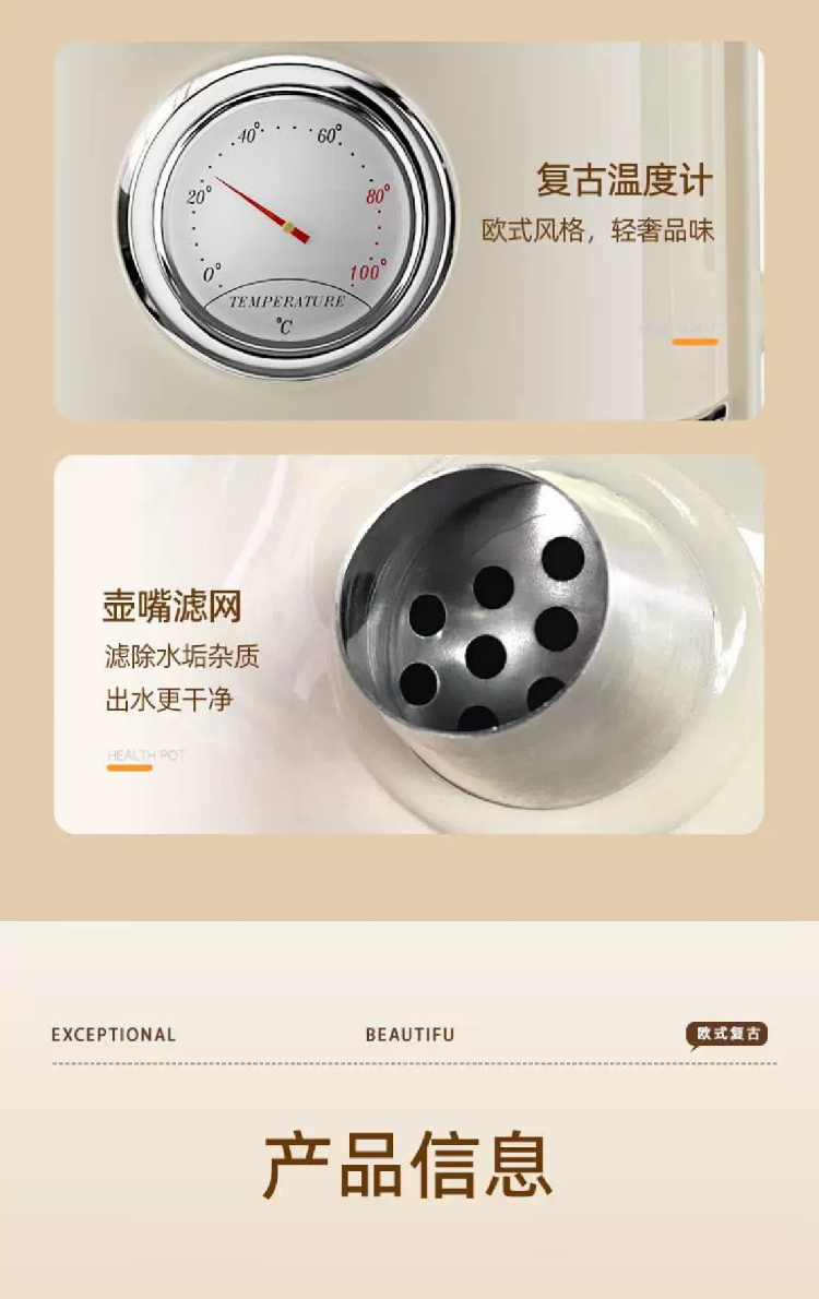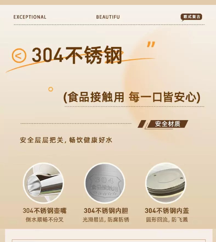 新款复古电热水壶家用304不锈钢带保温功能全自动智能烧水壶
