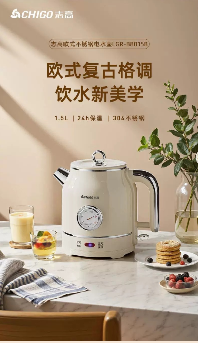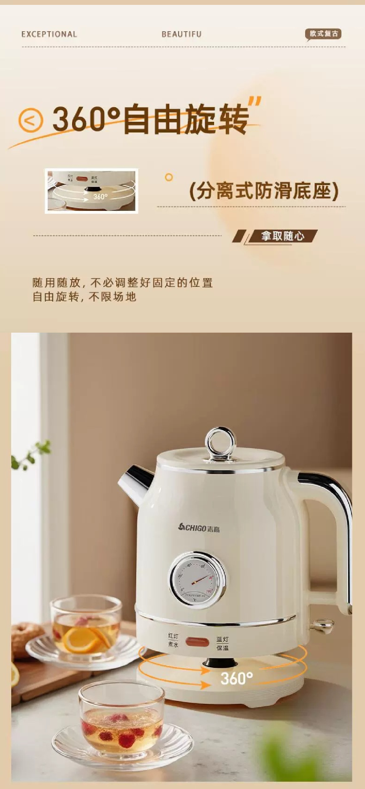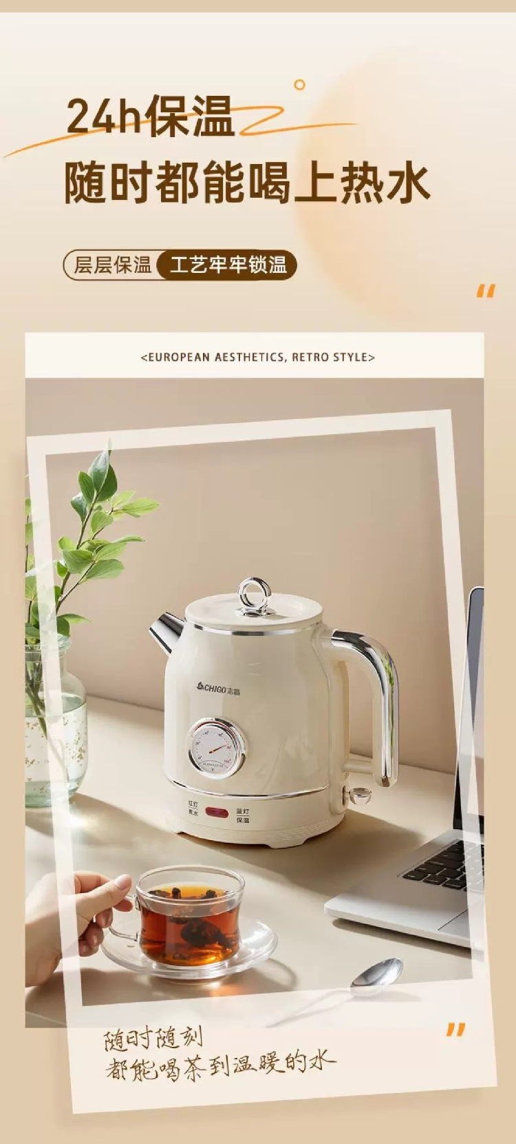 新款复古电热水壶家用304不锈钢带保温功能全自动智能烧水壶
