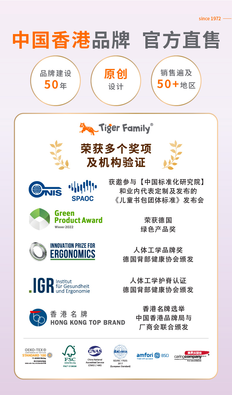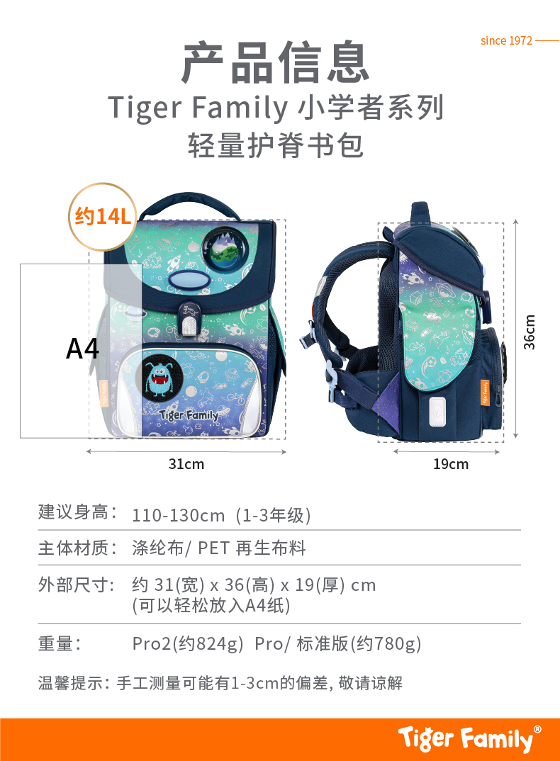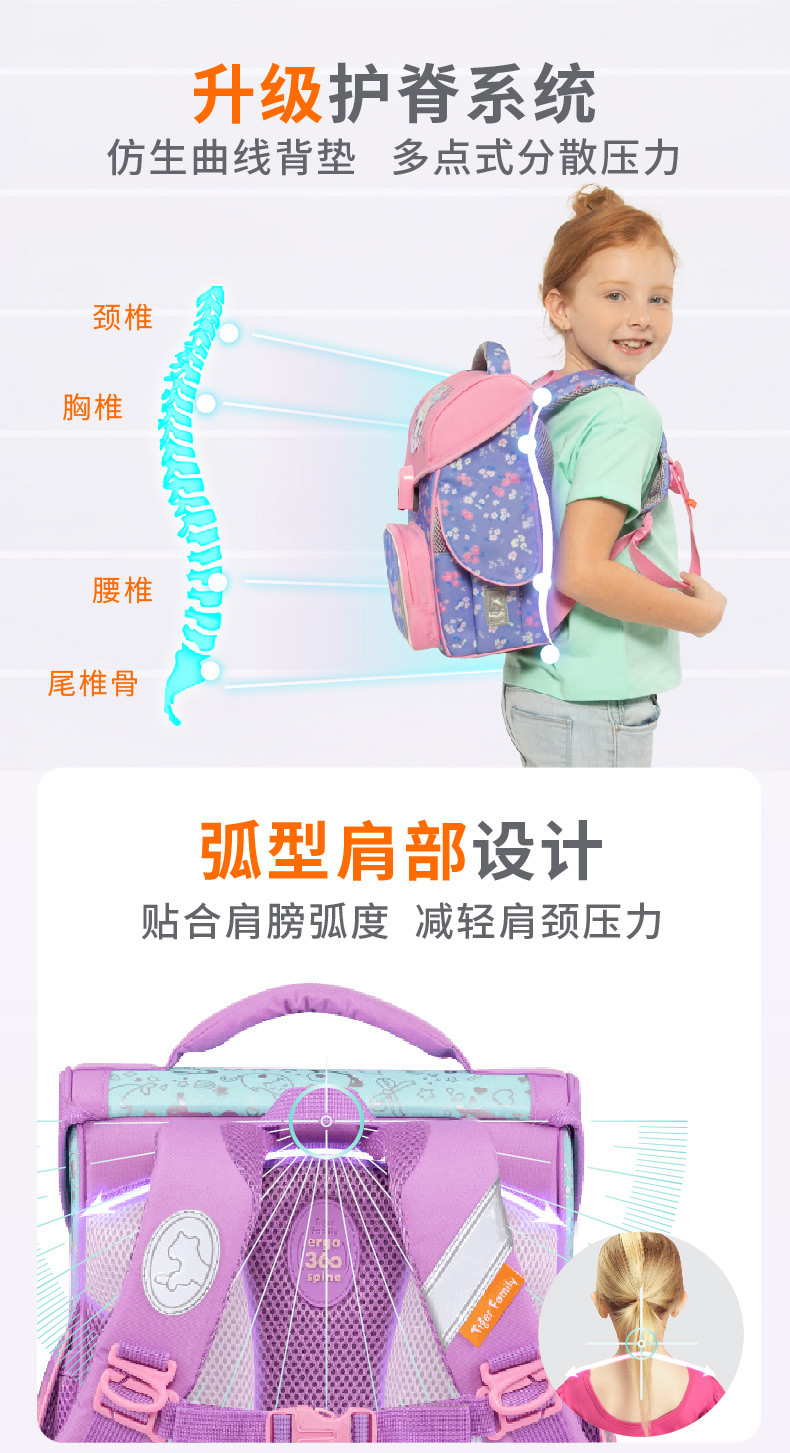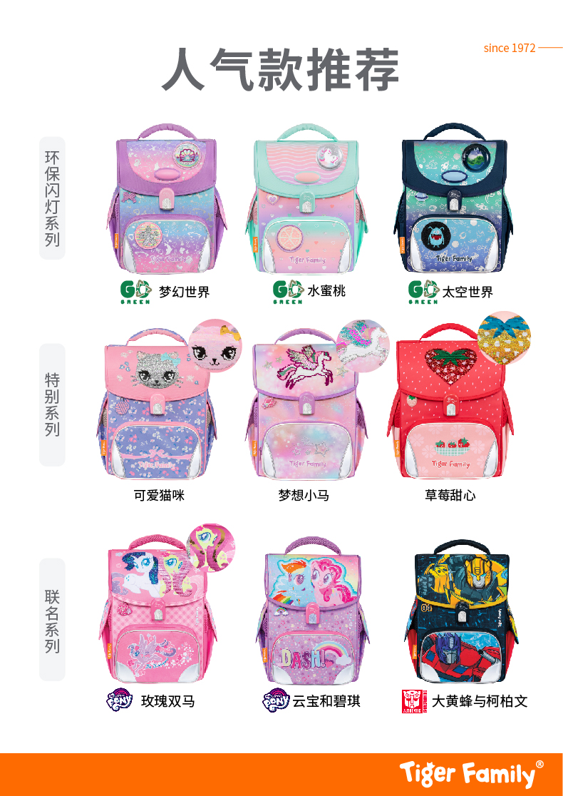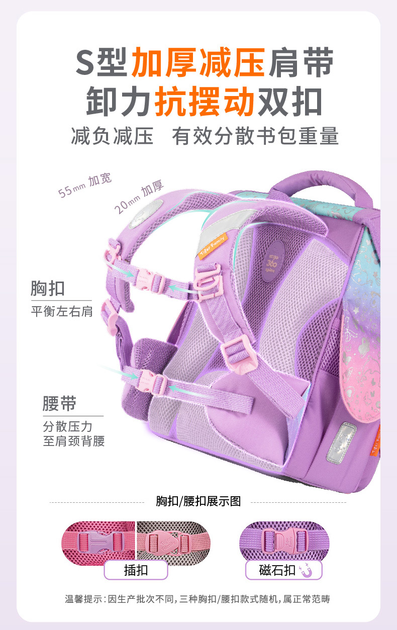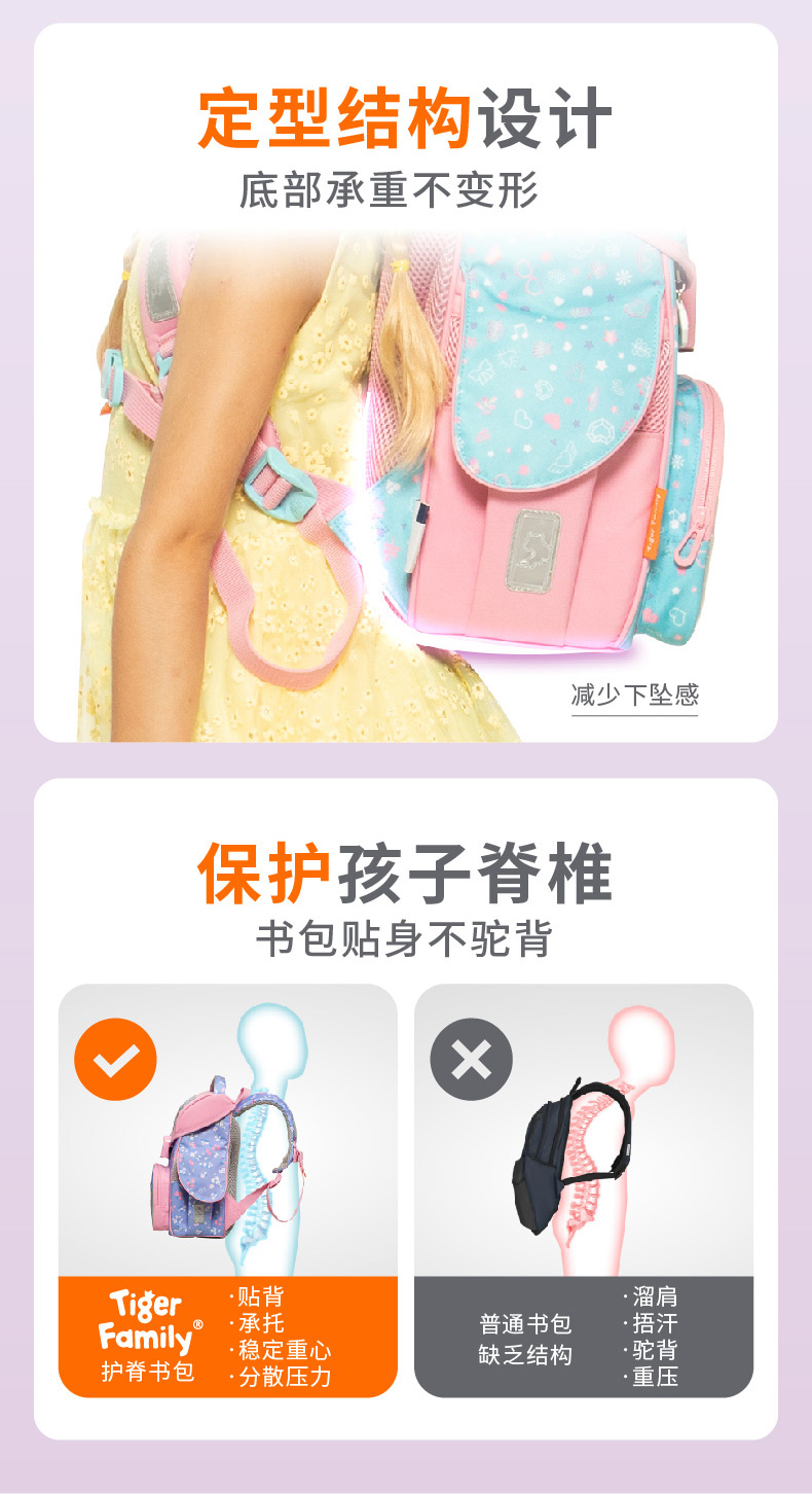24新款Tiger Family小学生护脊书包1-3年级学生书包护脊减负小学者小贵族学院风