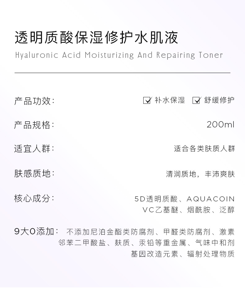 英树透明质酸保湿修护水肌液200ml 玻尿酸补水舒缓爽肤水化妆水敏感肌