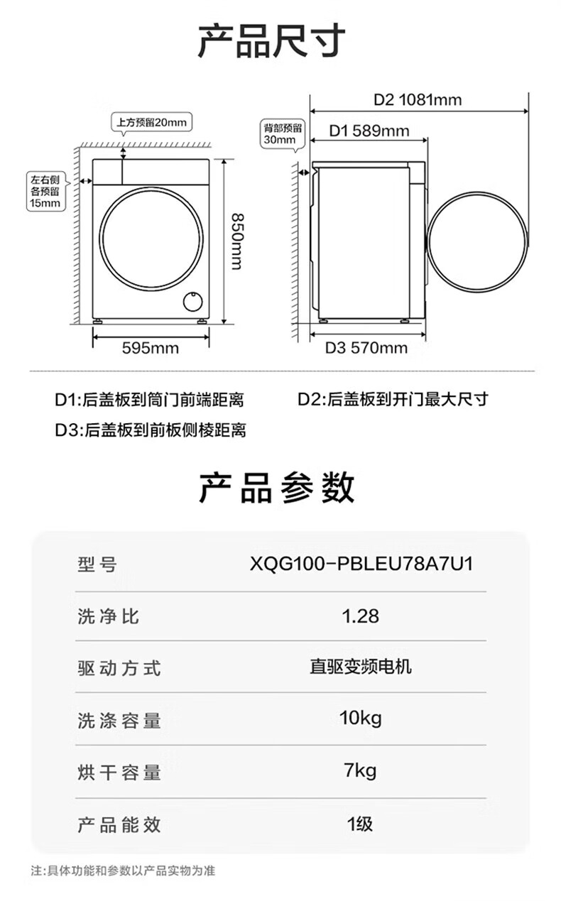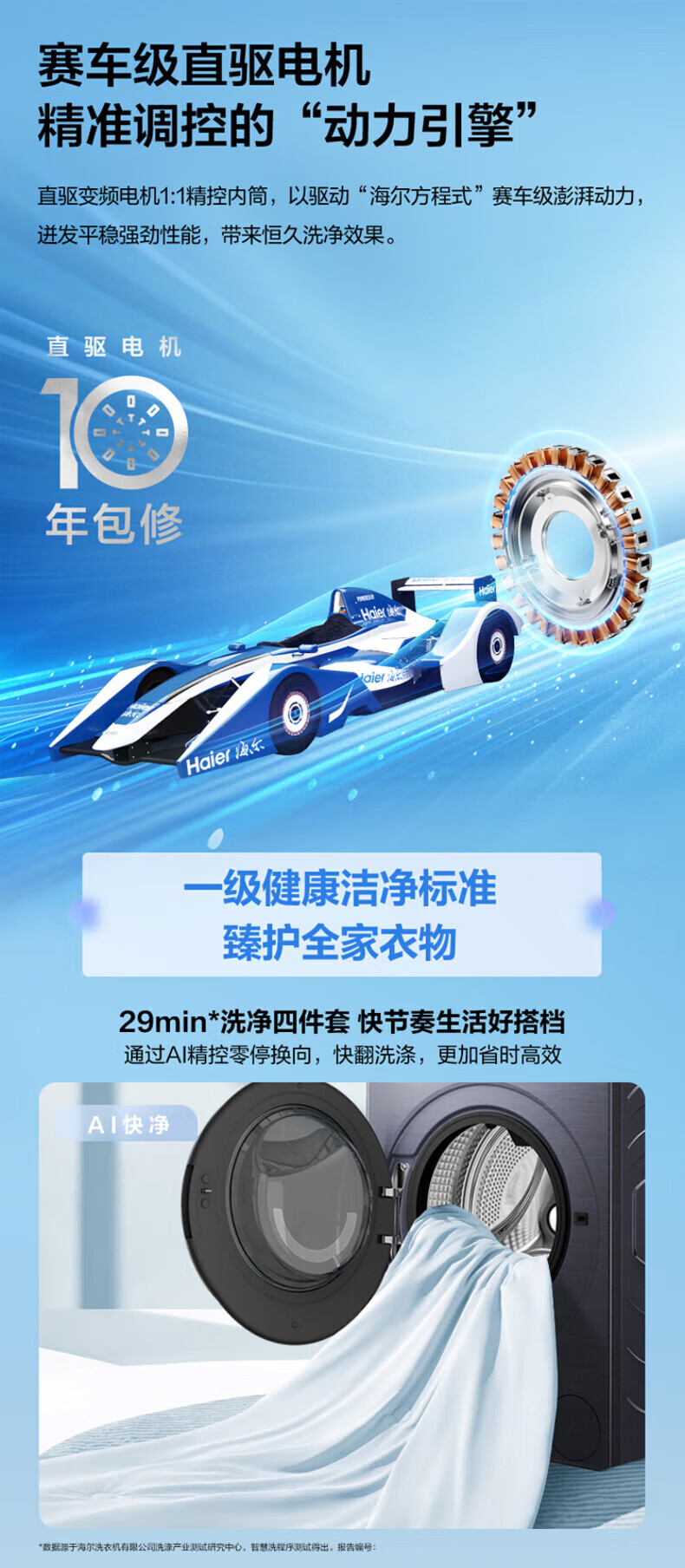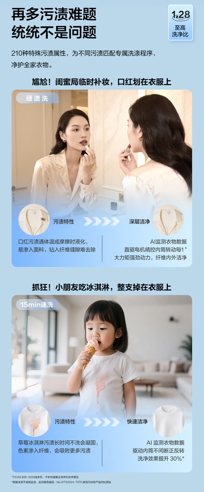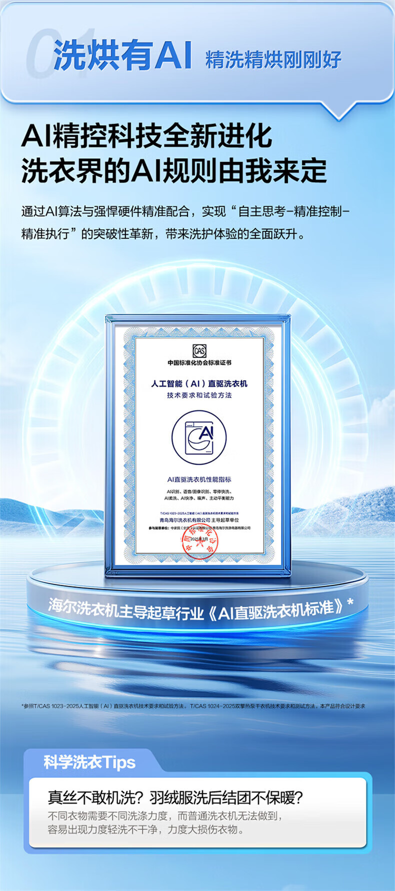 海尔(Haier)重磅新品天悦A7洗烘一体滚筒洗衣机 洗净比1.28 彩屏超薄纯平全嵌AI智能投放除菌 10KG 【25旗舰款】PBLEU78A7U1晶釉蓝洗烘一体