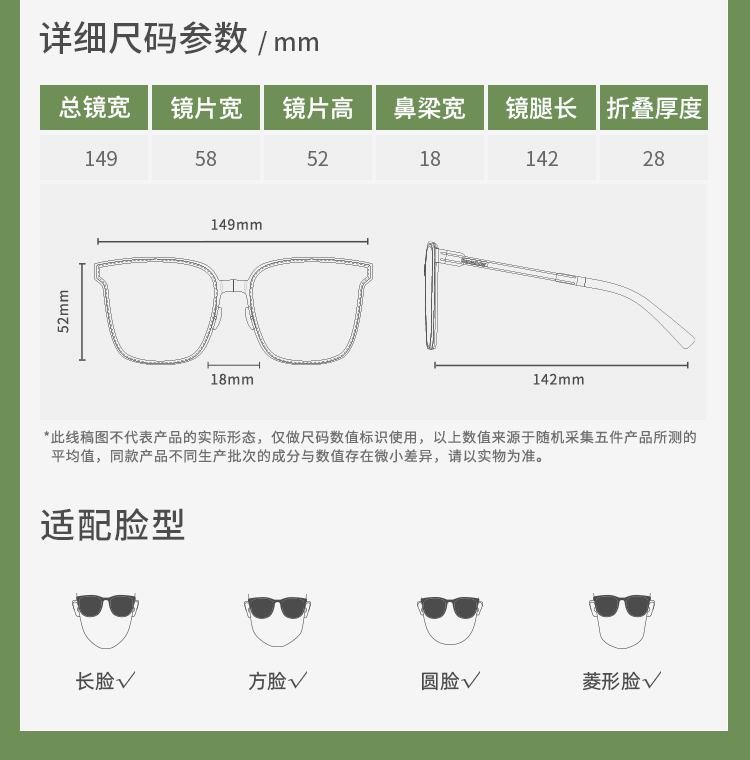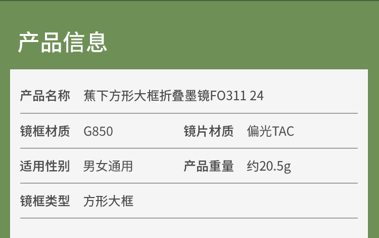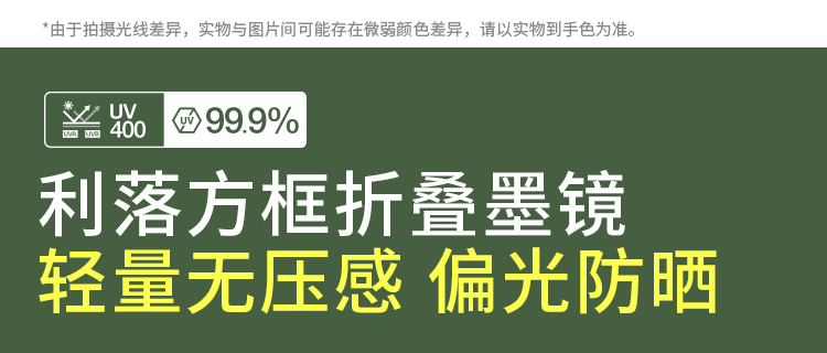 蕉下折叠墨镜女FO31124方形大框防紫外线显脸小防晒遮光男太阳镜