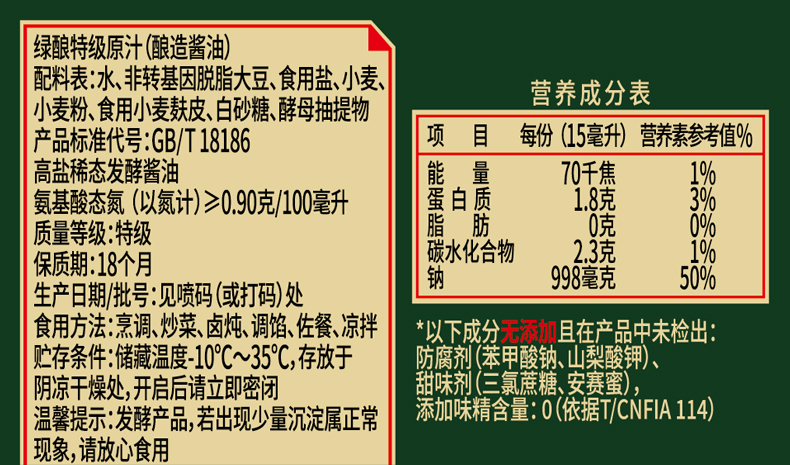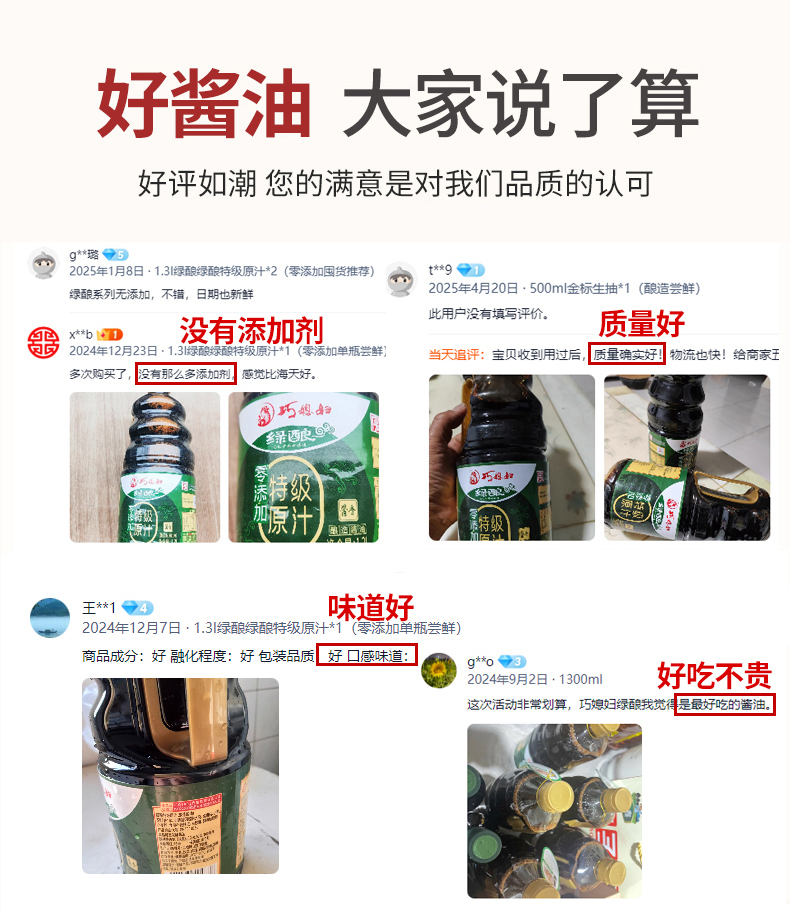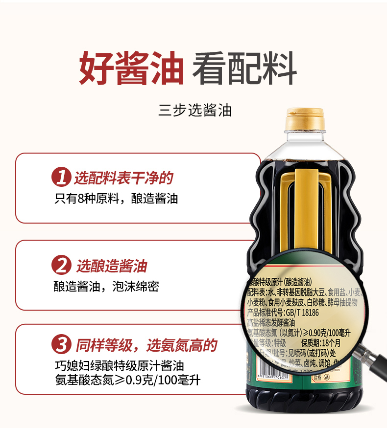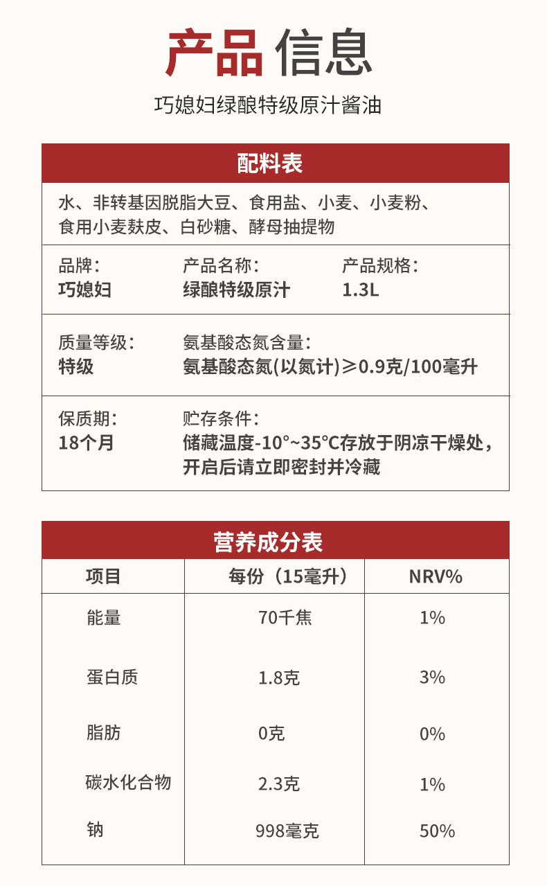 巧媳妇绿酿特级原汁1.3L*2大桶装生抽味极鲜调味0添加厂家直销